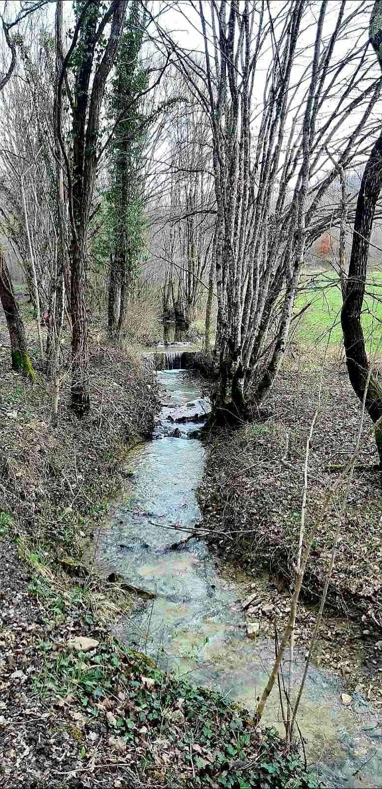 Ukupno zemljište uključuje 5.500 m² građevinskog dijela te oranice koje nisu obrađivane desetak godina, pašnjake, livade i šumu. Na ulazu u imanje prolazi mali potok, dodatno naglašavajući prirodnu ljepotu posjeda.