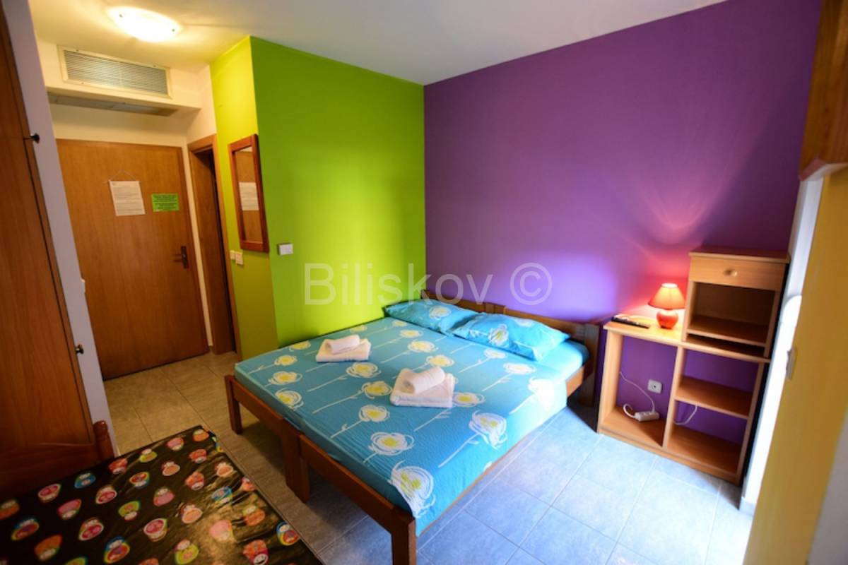 Objekt 1.- izgradnja 2003 god.- 564 m2 BRP- 454 m2 NGP- suteren, prizemlje, kat, visoko potkrovlje- ukupno 17 studio apartmana- u suterenu se nalazi kotlovnica, praonica, skladište, 3 sobe za osoblje, 3 kupaonice s tuš kabinom- kompletno grijanje hlađenje svih prostorija
