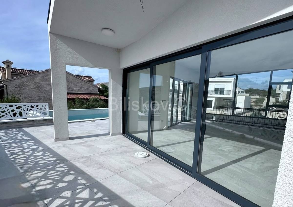 Novoizgrađen, moderan dvojni objekt razveden na dvije etaže površine 178 m2 s okućnicom od 500 m2.