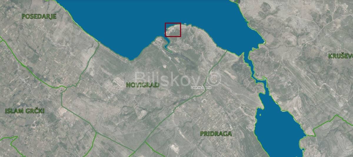 Građevinsko zemljište površine 6144 m2 na mirnoj uzbrdici s prekrasnim pogledom na more, Velebit i Maslenički most. Udaljenost od mora je cca 150m.