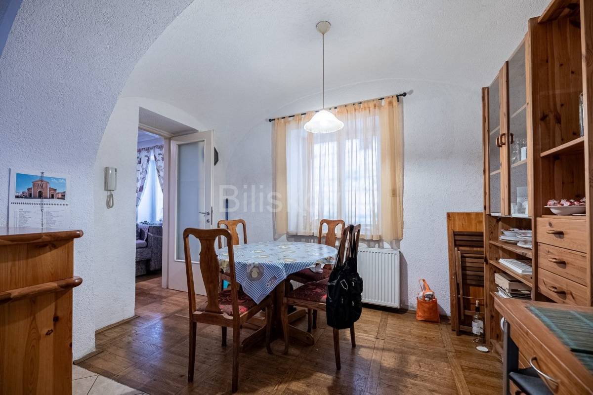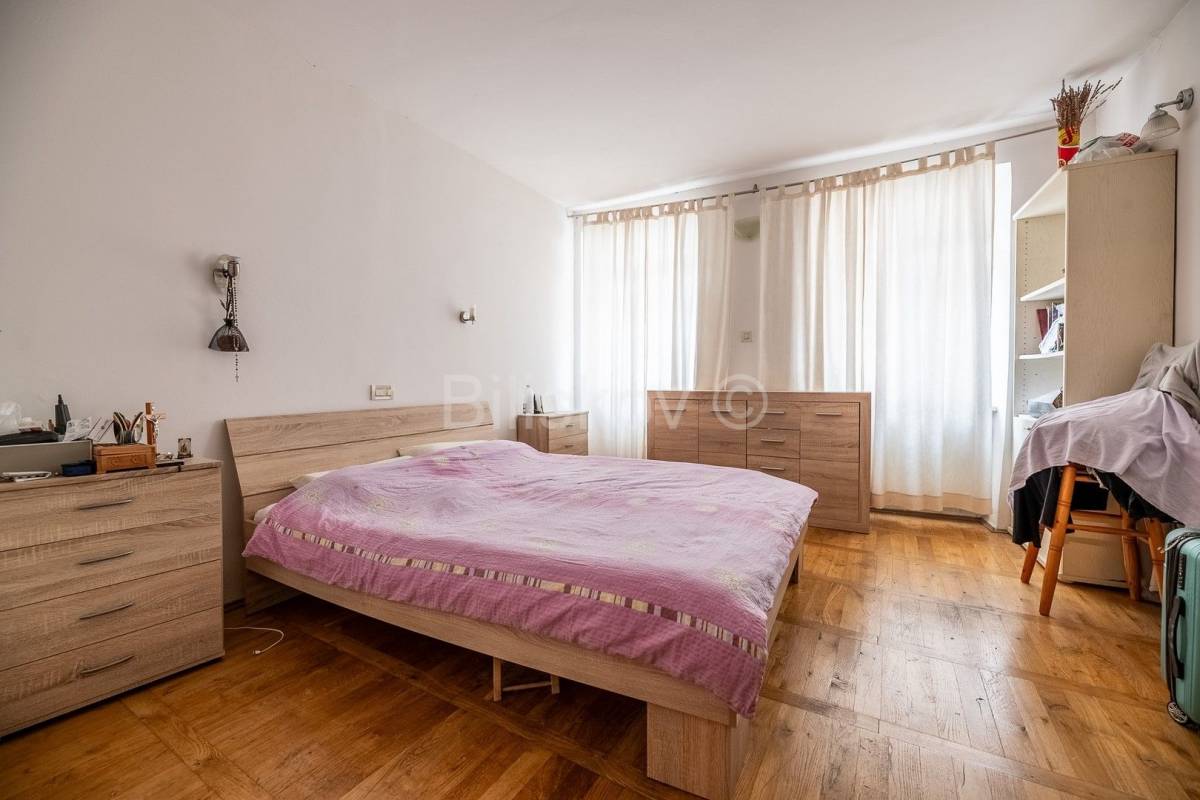 Prekrasan trosoban građanski stan podne površine 93,30 m2 u prizemlju stambene zgrade koja je građena krajem 1900 godine. U papirima je stan površine 82,61 m2. Zgrada nema dizalo. Stan se sastoji od ulaznog prostora, dvije spavaće sobe, dnevnog boravka (ima kamin), kuhinje sa blagovaonicom, kupaonice sa wc-om, WC-a. Stanu neodvojivo pripada ostava u prizemlju od 0,91 m2 te spremište na tavanu od 8,38 m2. Zadnja adaptacija je izvedena 2005 godine.