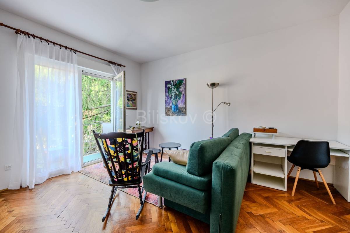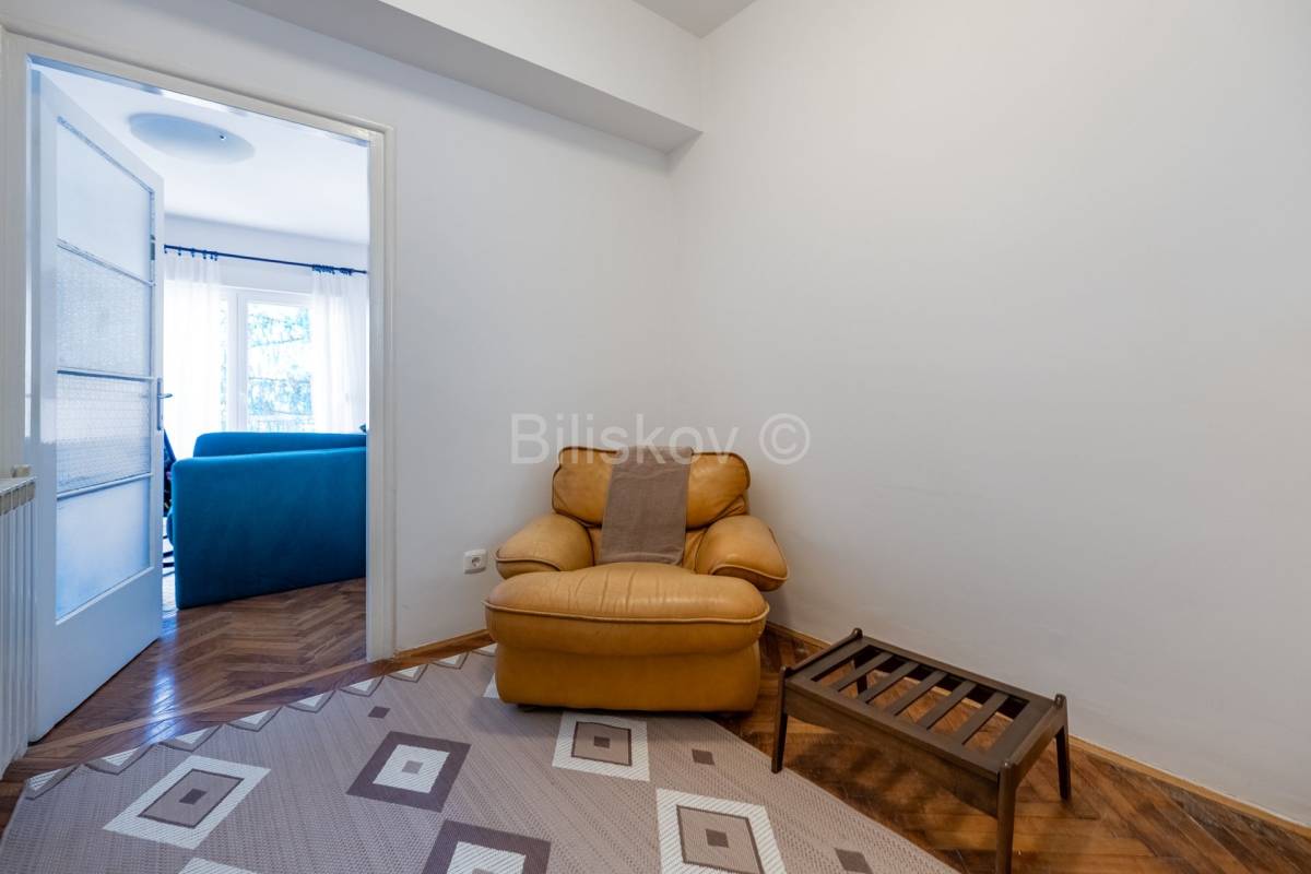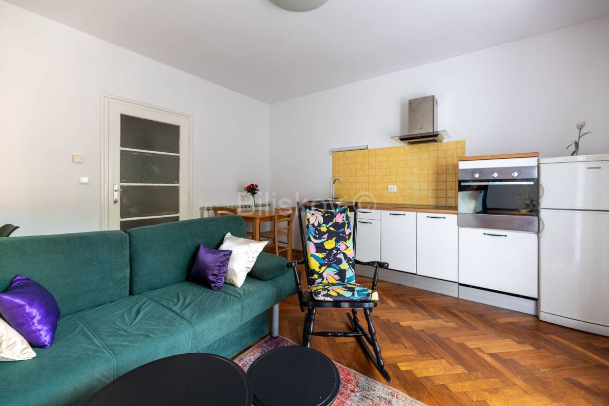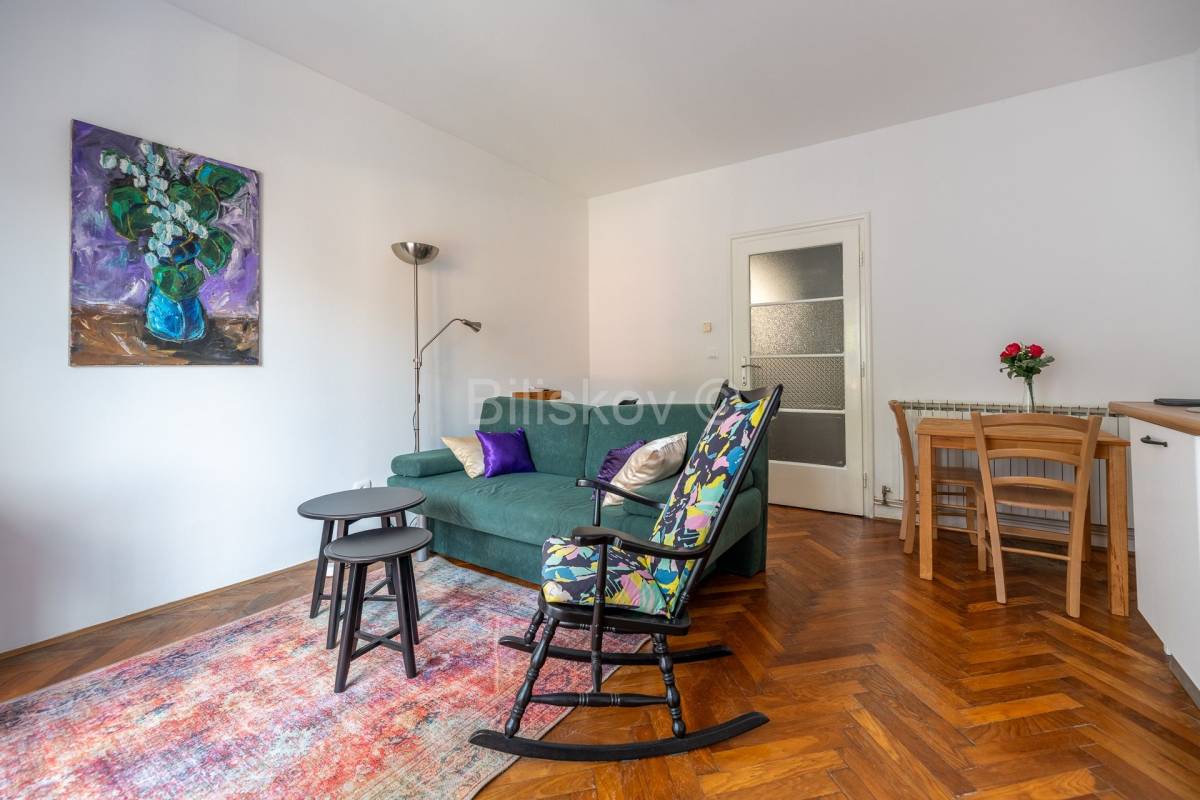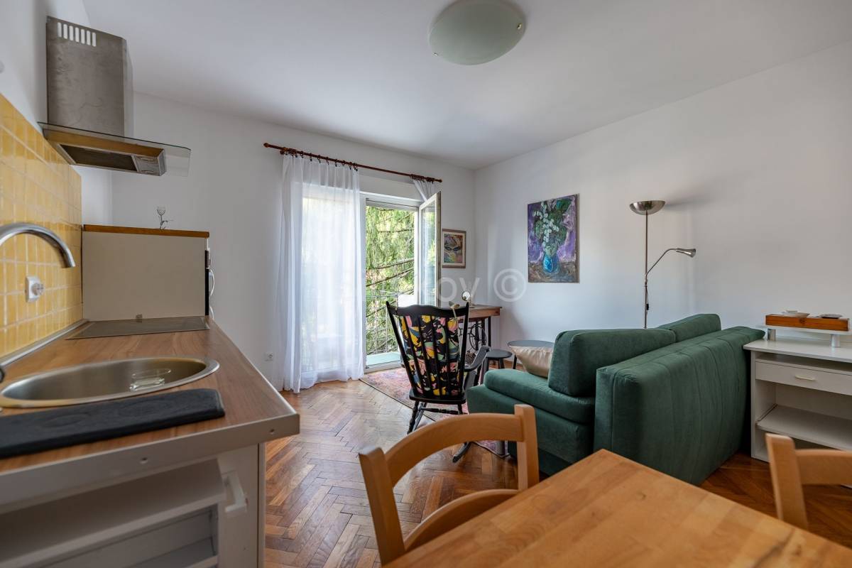 Vrlo lijep i ugodan jednosoban stan površine 40 m² smješten je na drugom katu zgrade izgrađene 1940. godine. Na vlasničkom listu površina stana iznosi 35,8 m², no zahvaljujući dobro osmišljenoj adaptaciji dobiveno je nekoliko dodatnih kvadrata.