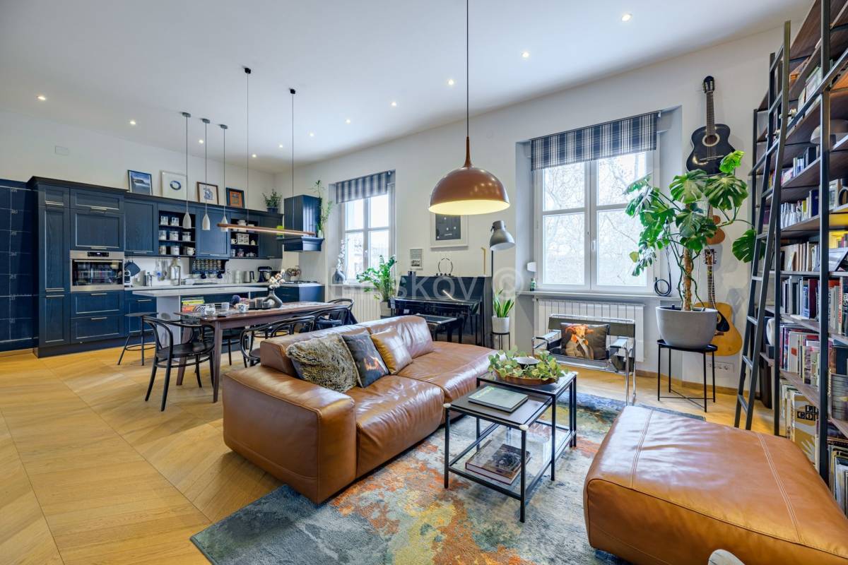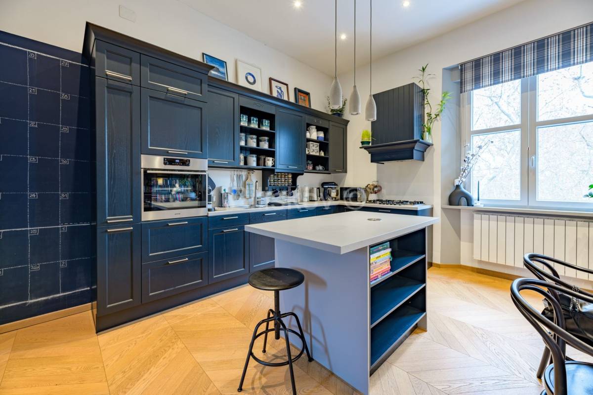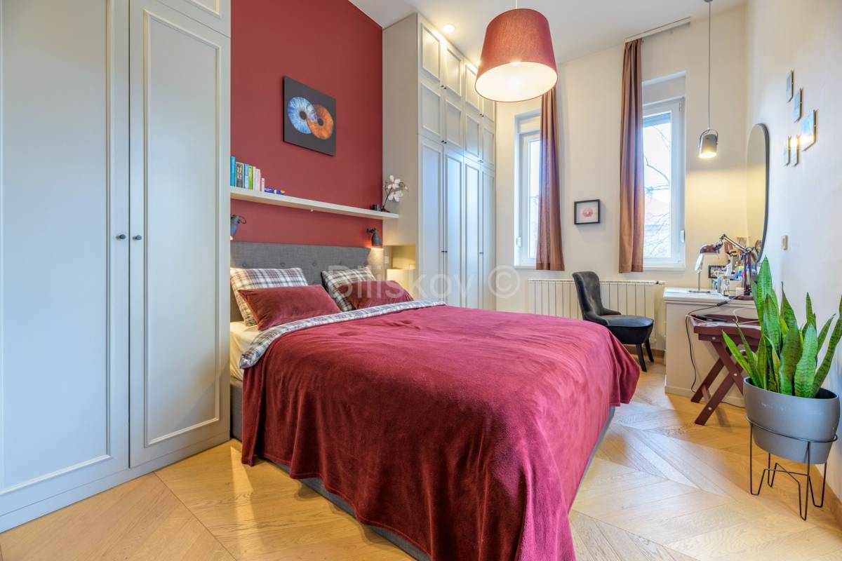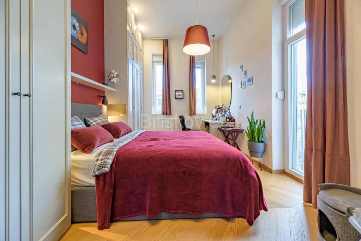 Pri samoj renovaciji korišteni su visoko kvalitetni materijali te je stan vrhunski i moderno opremljen. Svaka soba sadrži klima uređaj, kupaona ima podno grijanje a uz stropove visine 3,5 metara postignut je osjećaj raskoši. Pogled na park koji dominira dnevnim boravkom ovom prostoru daje poseban šarm.