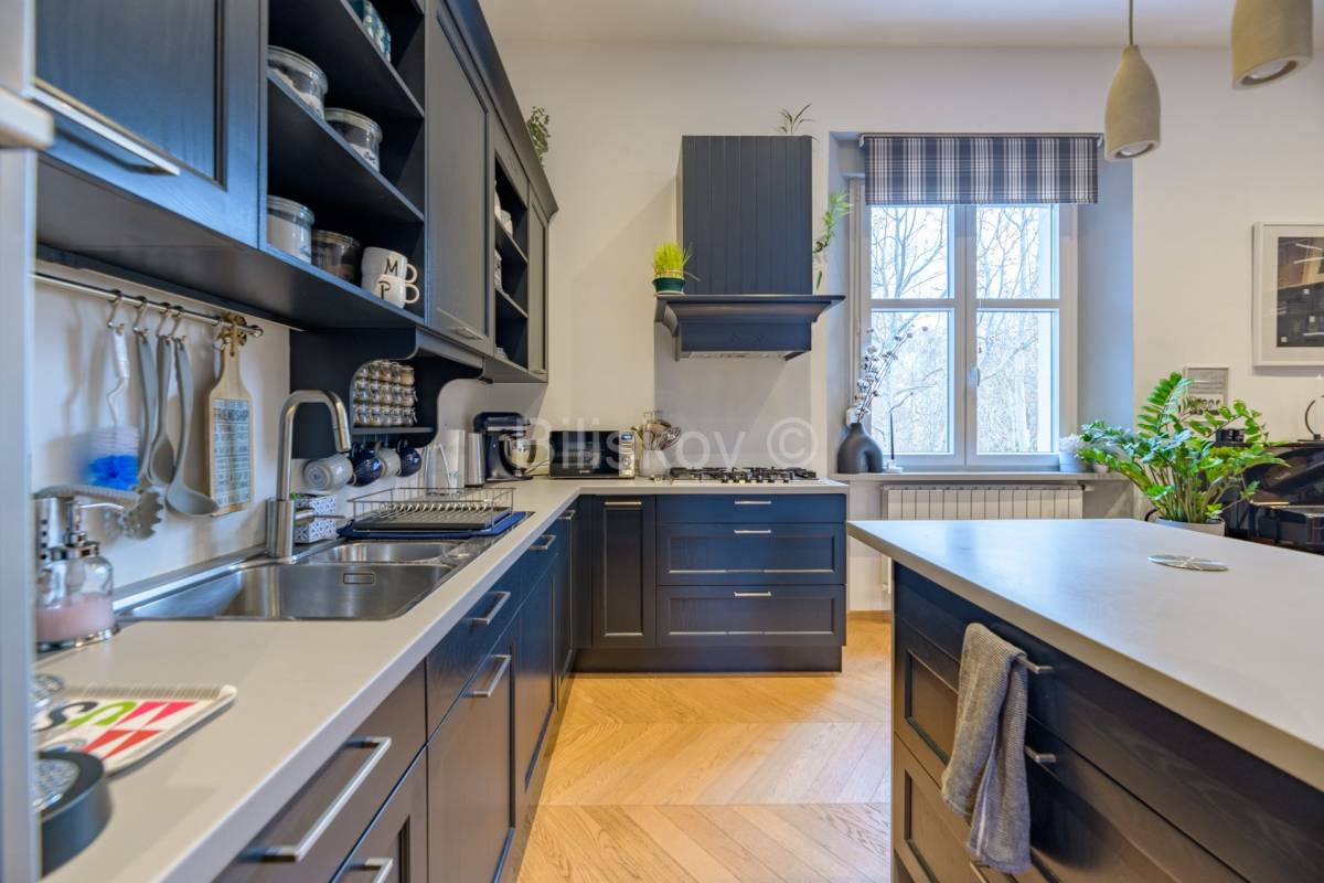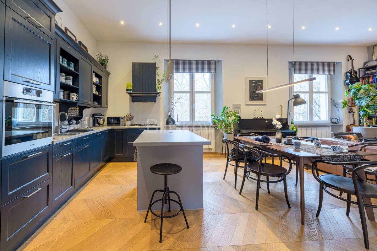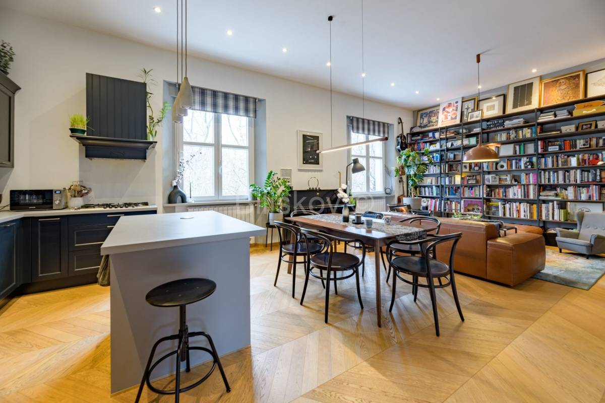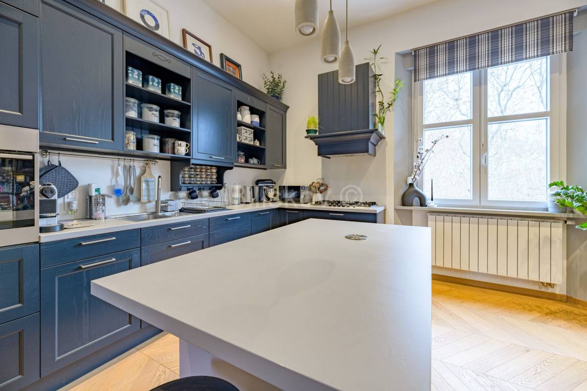Pri samoj renovaciji korišteni su visoko kvalitetni materijali te je stan vrhunski i moderno opremljen. Svaka soba sadrži klima uređaj, kupaona ima podno grijanje a uz stropove visine 3,5 metara postignut je osjećaj raskoši. Pogled na park koji dominira dnevnim boravkom ovom prostoru daje poseban šarm.