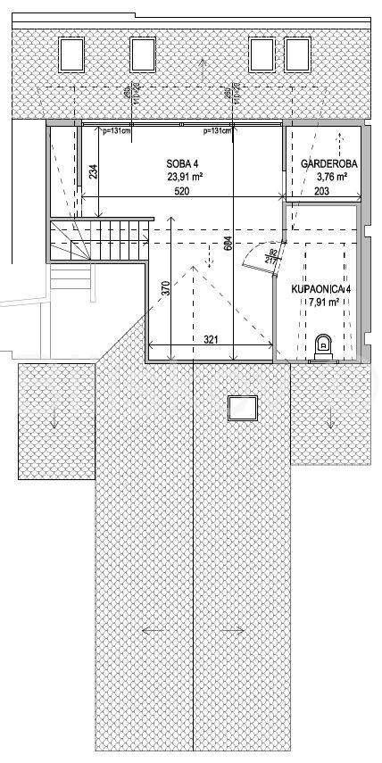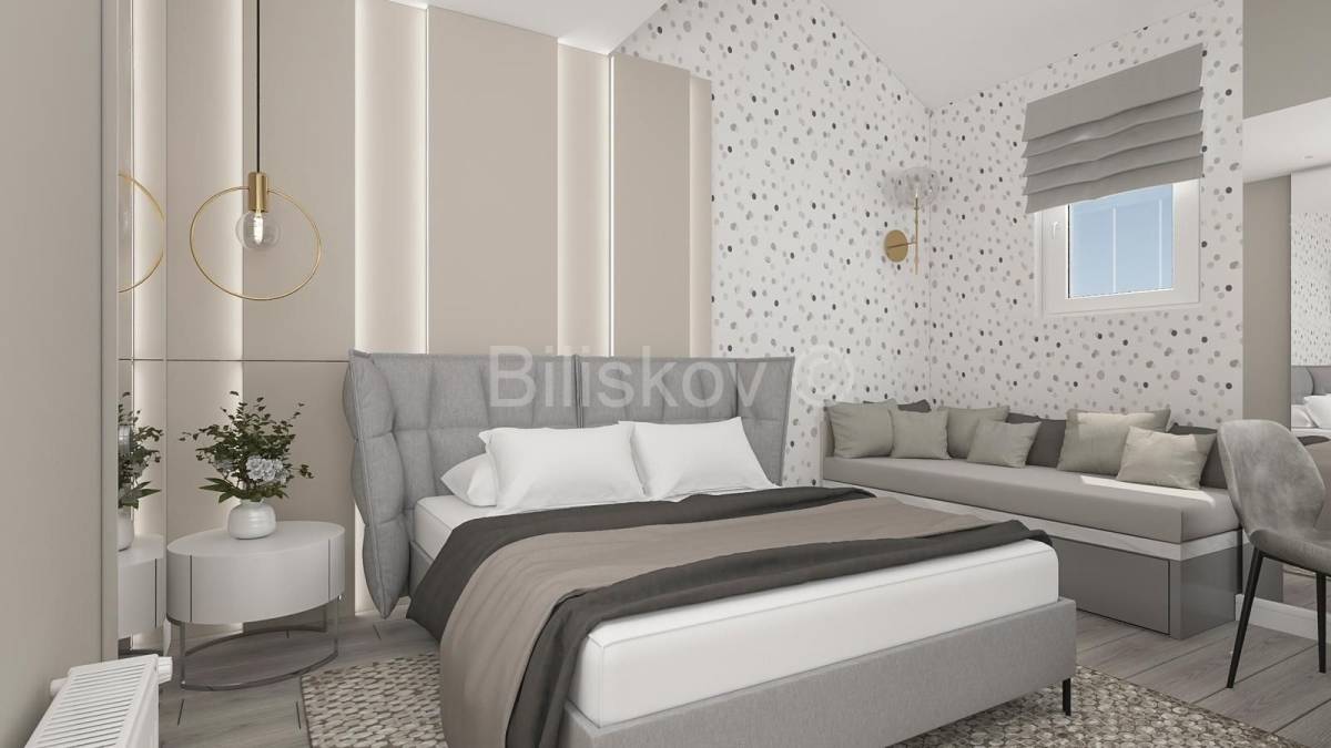 Stan na 2.katu se sastoji od dnevnog boravka integriranog s blagovaonicom, kuhinje, dvije dječje sobe s kupaonicom, roditeljske sobe s kupaonicom, gostinjskog wc-a.