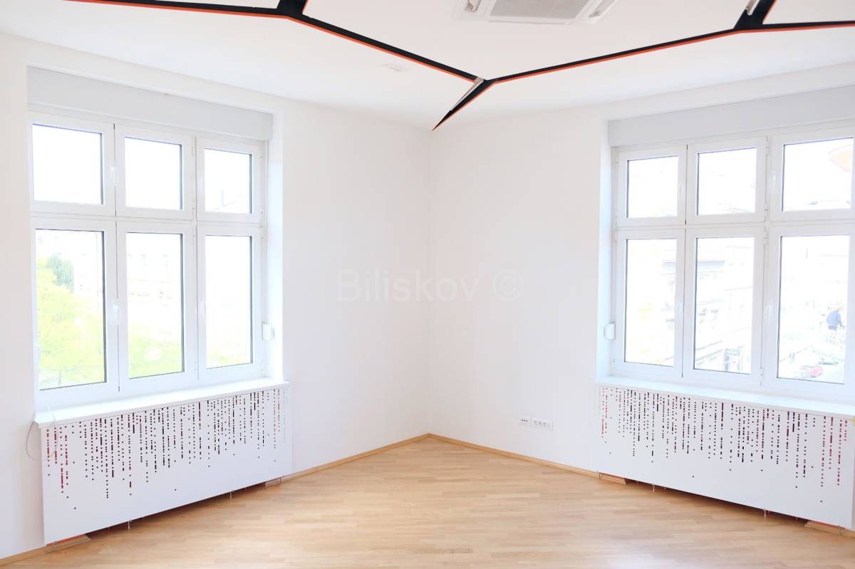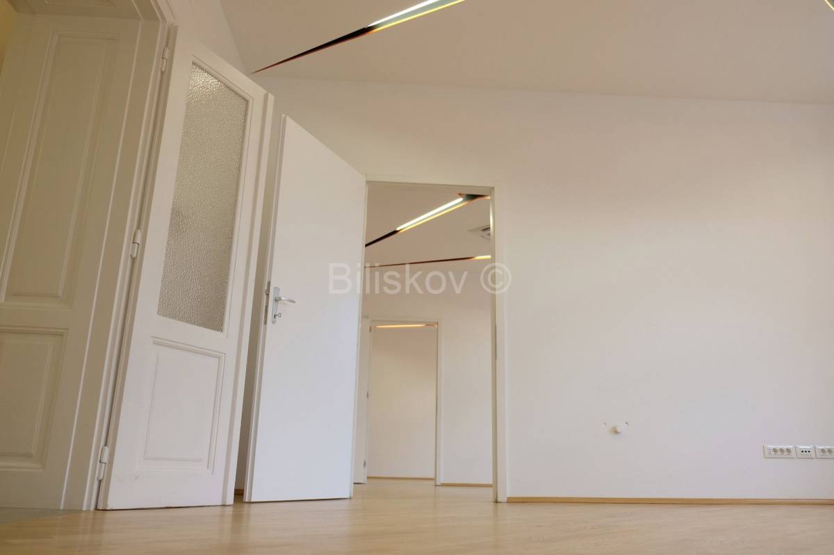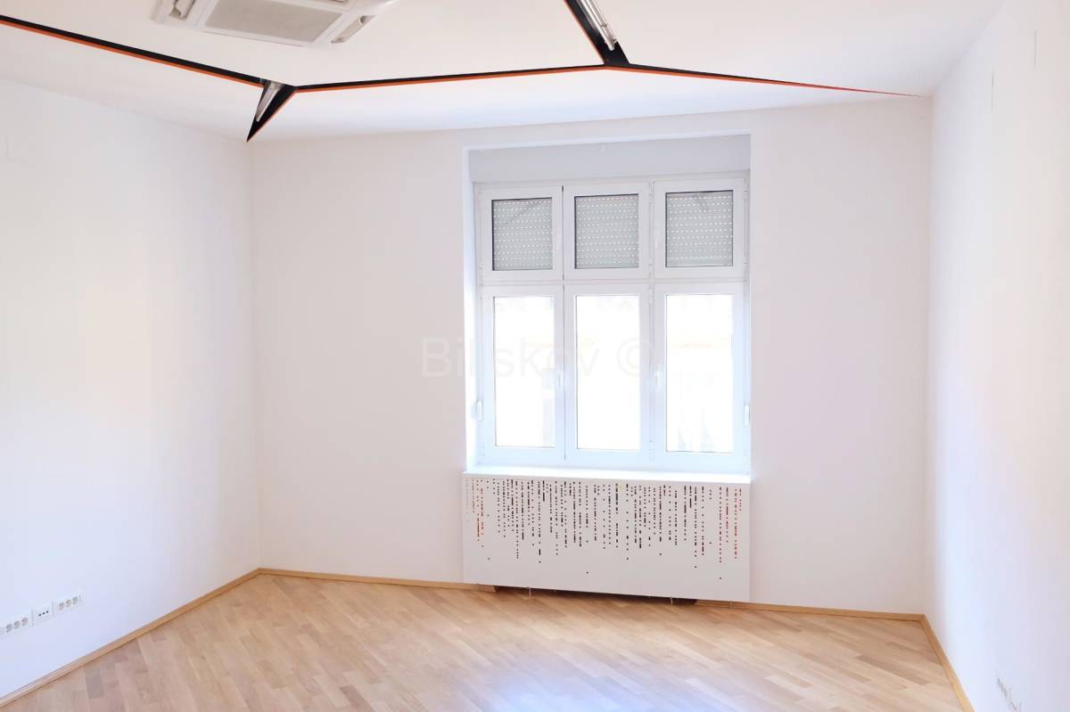 Sjajno iskorišten prostor sastoji se od: velikog svijetlog predsoblja iz kojeg je direktan ulaz u četiri velike sobe koje imaju pogled u daljini na Zrinjevac , dva sanitarna čvora (od kojih jedan može biti prilagođenza invalide), te kupaonica sa walk-in tušem, sobe koja je sada u funkciji garderobe, čajne kuhinje, ostave sa bojlerom. Stanu neodvojivo pripada tavanska prostorija od 4m2. Stan je kompletno adaptiran 2013 godine, a 2018 godine je napravljena readaptacija parketa. U predsoblju i servisnim prostorijama je visokokvalitetni pod od epoksidne smole, dok je u sobama novi hrastov parket 1.kategorije. Sobe su svijetle s velikim alu-prozorima i izo staklom.