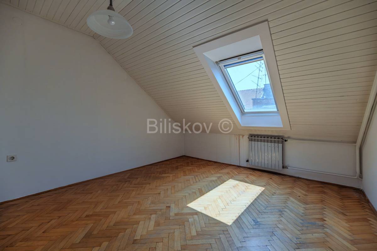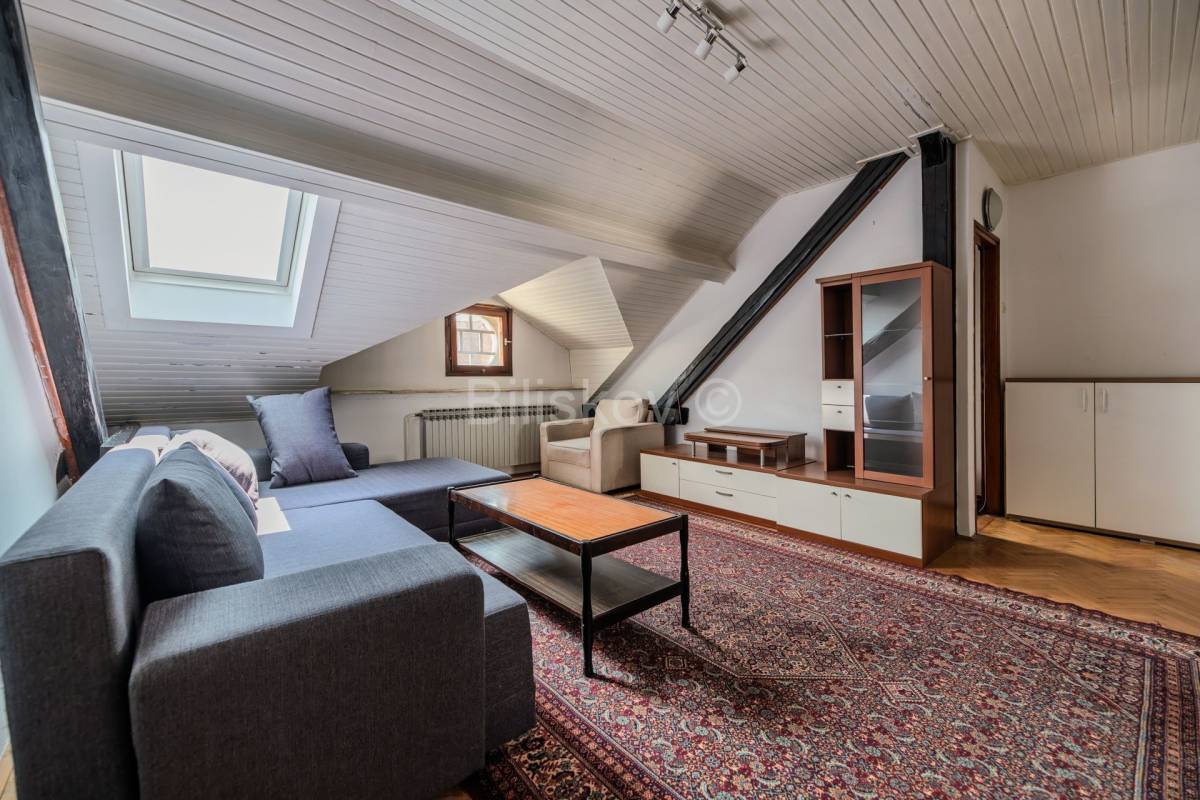 U ponudi je prostrani dvoetažni stan ukupne površine 90m², smješten na četvrtom katu i u potkrovlju stambene zgrade bez lifta, u Đorđićevoj ulici, jednoj od najtraženijih lokacija u Zagrebu.