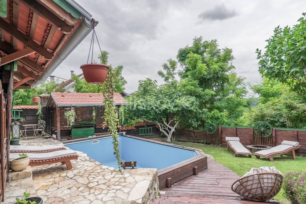 Samostojeća luksuzna vikend kuća stambene površine 250 m2 koju okružuje veliki uređeni vrt, bazen i jacuzzi, sjenica i natkriveni dio za parkiranje, sagrađena 2012. godine na parceli od 430 m2.