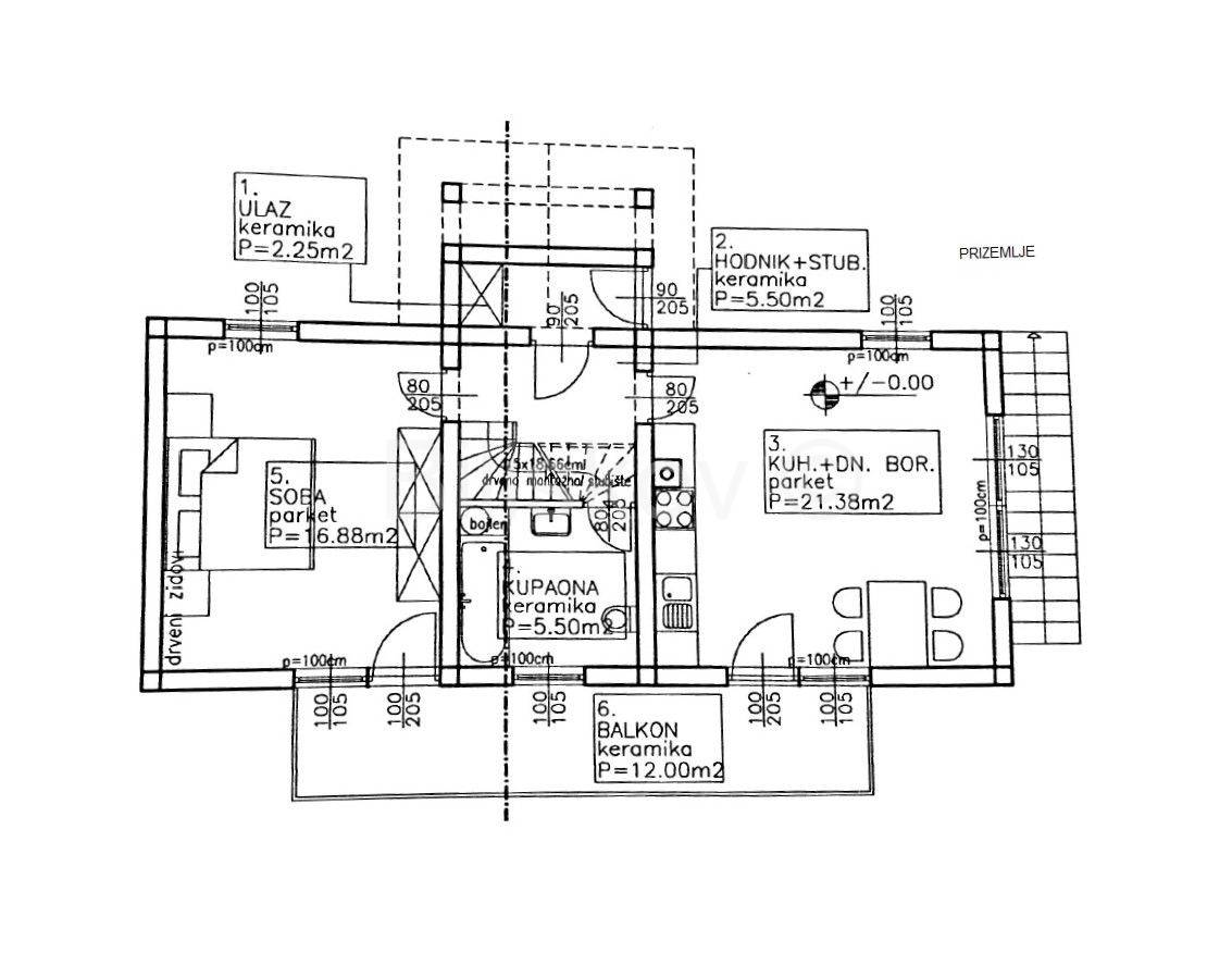 Grijanje: Etažno plinsko (po želji može se koristiti i kamin na drva)