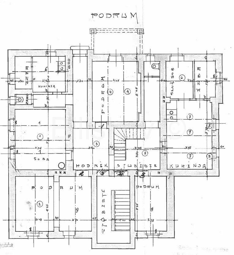 Sastoji se od tri stana: suteren 60 m2, prvi kat 120 m2 i drugi kat 100 m2.