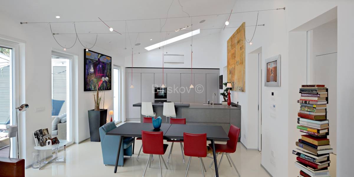 Moderno dizajnirana troetažna dvojna kuća površine 195 m² smjestila se na parceli od 377 m². Izgrađena 1932. godine, kuća je u potpunosti adaptirana 2015.,