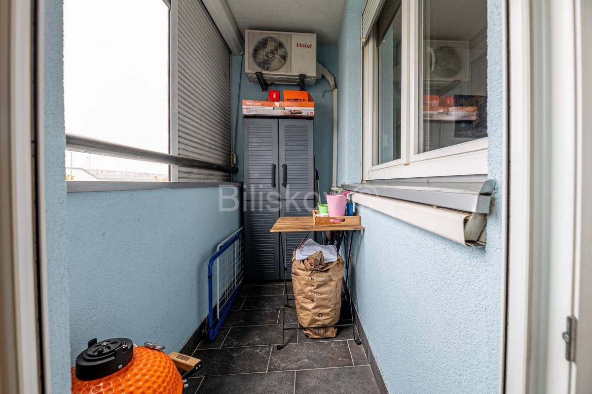 Prekrasan dvosoban stan ukupne površine 52m2m2 na 1.katu zgrade sagrađene 2008 godine. Zgrada ima 2 dizala. Sam stan je površine 43,56m2. Uz stan se prodaje garaža u podrumu površine 11,52m2. Garaža ima svoj vlasnički list. Sjajno iskorišten prostor sastoji se od ulaznog prostora, prostranog dnevnog boravka integriranog sa blagovaonicom i kuhinjom, spavaće sobe, kupaonice i loggie. Stanu neodvojivo pripada spremište u prizemlju. Stan je okupan u suncu. Prodaje se u viđenom stanju, dakle sa namještajem i uređajima. Parkiranje je oko zgrade, izvan zone naplate. Stan ima odvojena brojila za sve potrošače: struju, plin i vodu. Zgrada se nalazi se u blizini Arena centra i svih ostalih sadržaja potrebnih za ugodan život.