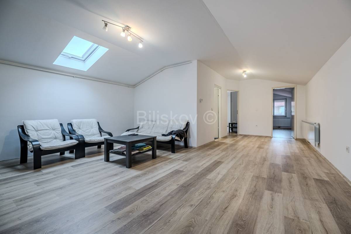 Stan na katu koji je i najveći se sastoji od iznimno velikog dnevnog boravka, kuhinje i blagovaone (otvoreni koncept), dvije spavaće sobe, kupaone i loggie.