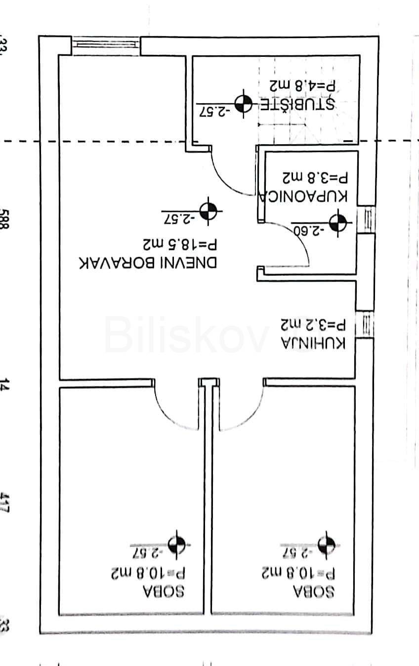 Stan u podrumu se sastoji od kuhinje, dnevnog boravka i blagovaone, dvije spavaće sobe i kupaone.