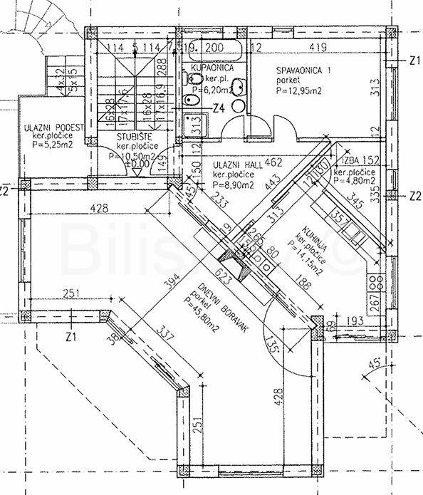 Samostojeća kuća (roh-bau) na tri etaže, površine 376,65 m2 (bruto), na zemljištu od 984 m2.