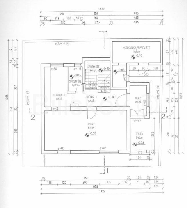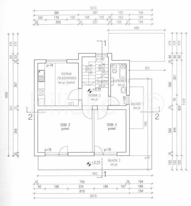 Samostojeća trokatnica površine 214 m2 izgrađena 1985. godine na parceli od 835 m2.