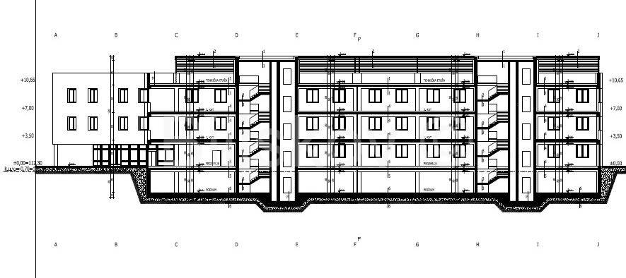 Samostojeća poslovna zgrada, novogradnja, ukupne bruto površine 4.269,53 m2 (neto 3.915,89 m2), sa pet etaža i to: podrum 1.053,18 m2 neto, prizemlje 697,48 m2 neto , dva kata svaki površine 723,43m2 neto,  te tehnička etaža s nadstrešnicom površine 718,37 neto, sa 5.960 m2 dvorišta ,