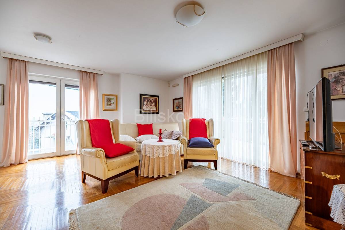 Lijep peterosoban stan u dvojnoj kući , ukupne  površine 200,75m2, građenoj 1990 godine. Kuća nema dizalo.