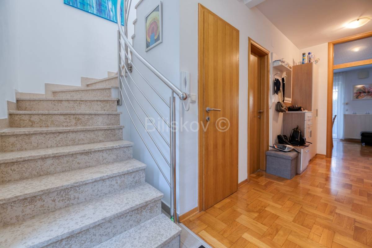 Stan sastoji od dvije etaže (prizemlje i kat) povezane unutarnjim stubištem, vrta i 2 VPM.