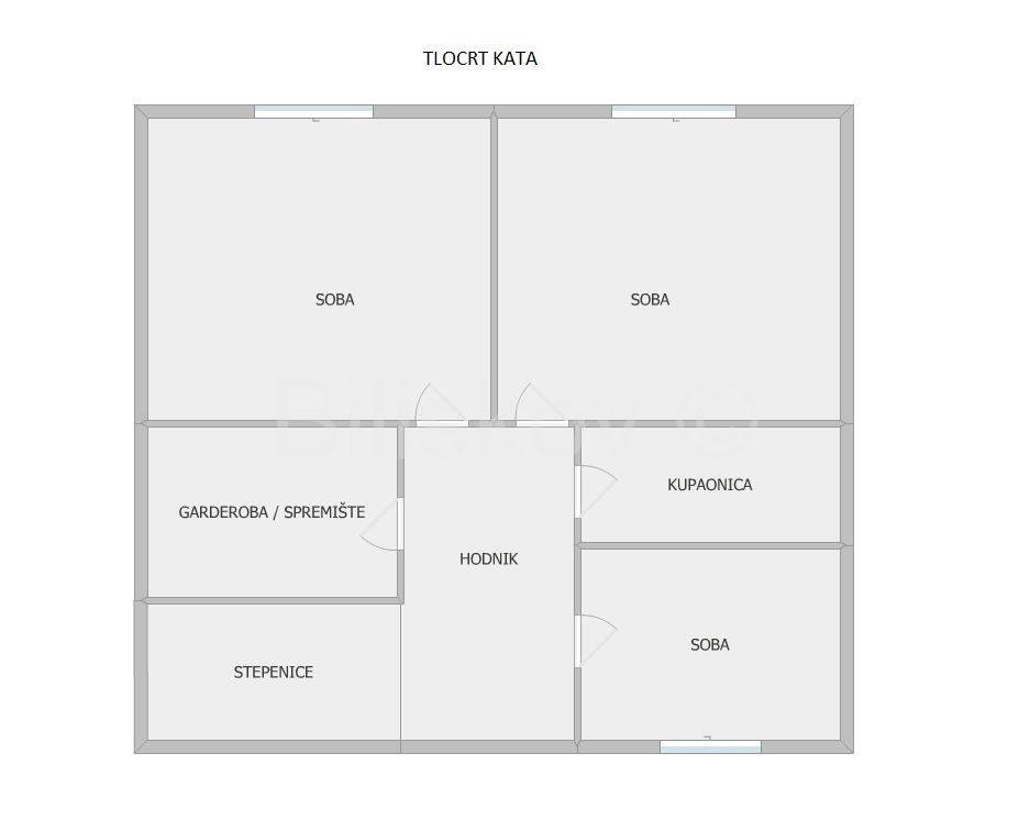 Kat se sastoji od 3 spavaće sobe, kupaonice s WC-om, ostave i hodnika.