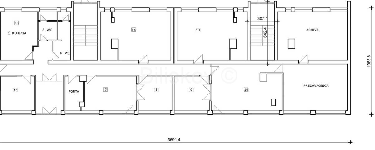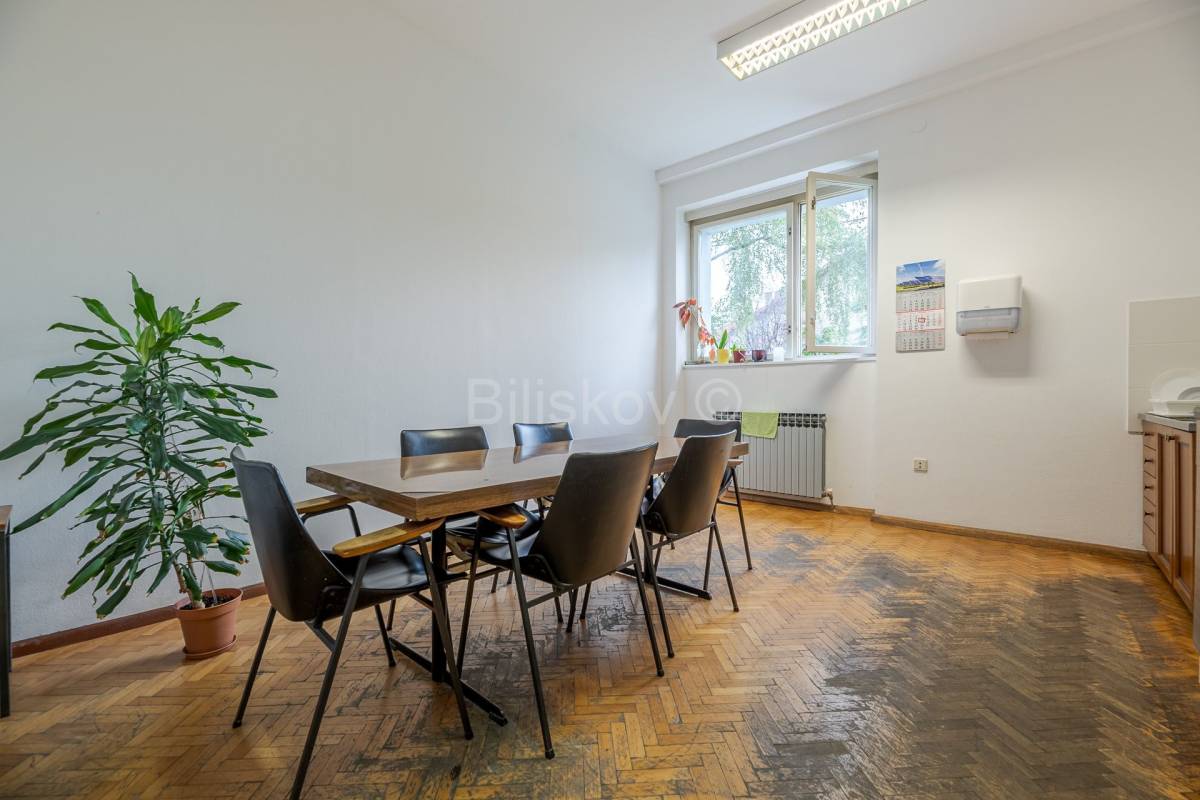 Prostor se sastoji od deset funkcionalno raspoređenih prostorija, uključujući sanitarni čvor i čajnu kuhinju, što ga čini idealnim za različite poslovne namjene.