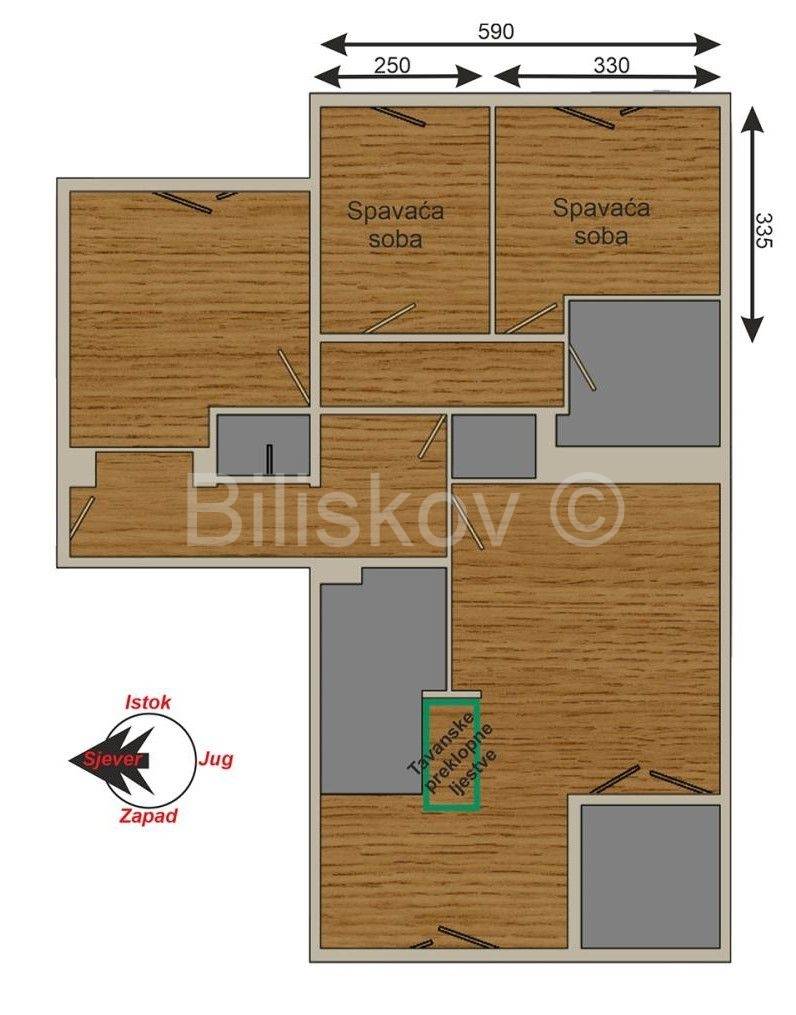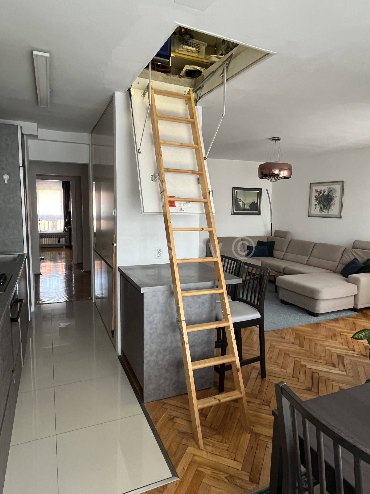 Iz dnevnog boravka stan ima direktan pristup tavanskom prostoru koji trenutno služi kao ostava (dodatnih 18 m2).