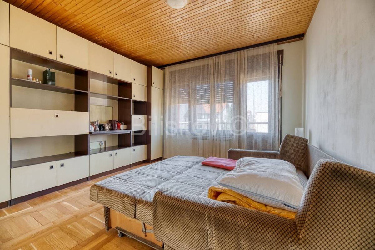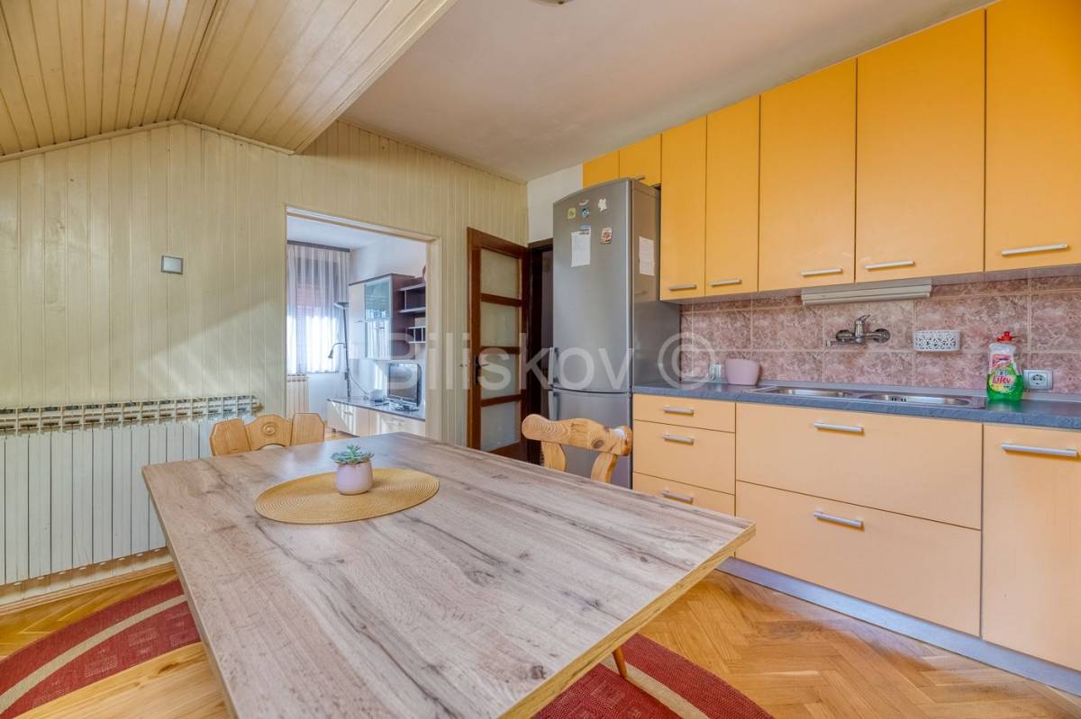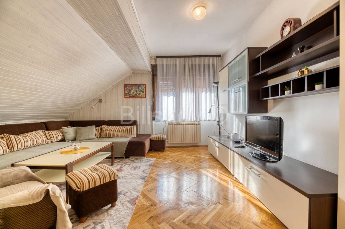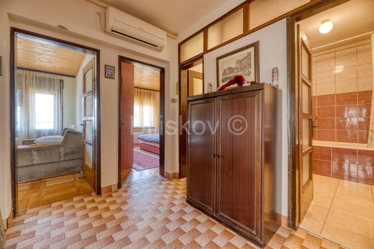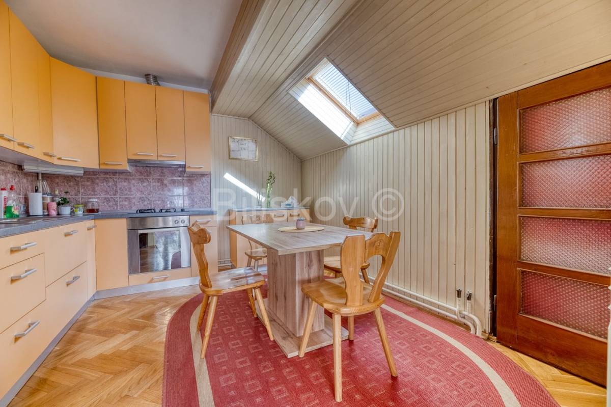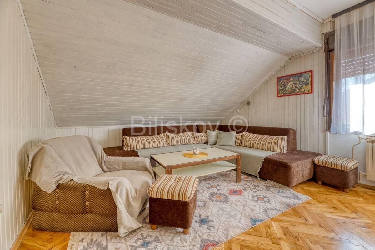 Trosoban stan površine 80m2 u potkrovlju obiteljske dvojne kuće izgrađene 1963. godine.