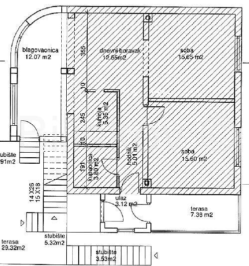 Prizemlje: trosobni stan ukupne površine 113 m2