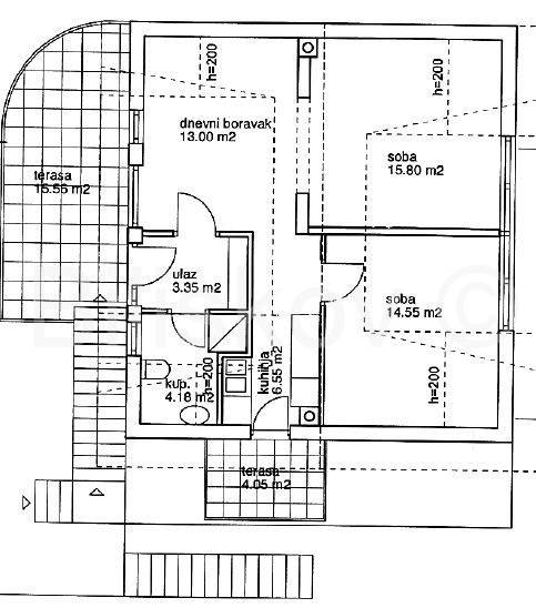 potkrovlje: dvosoibni stan površine 70 m2, sa natkrivenom terasom površine 16 m2