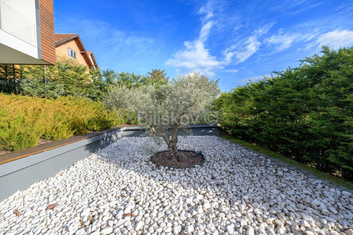 Smještena na mirnoj lokaciji na obroncima Medvednice, vila je okružena prostranom okućnicom i pažljivo uređenim hortikulturnim vrtom.