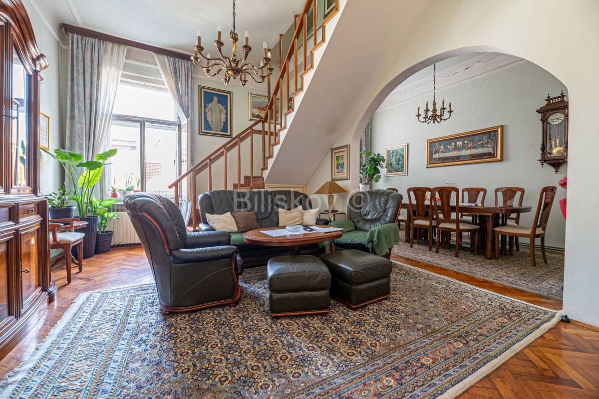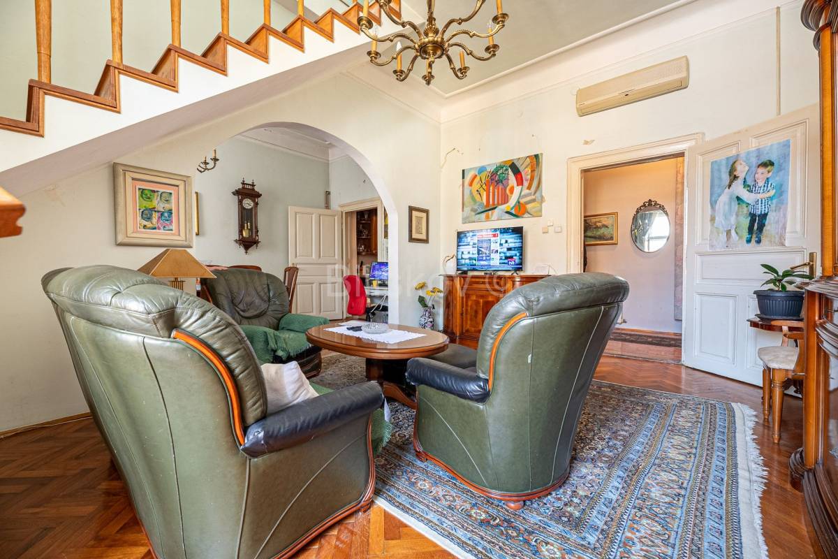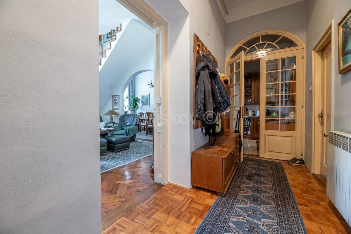 Peterosoban dvoetažan stan površine 136,75 m2 na 2. i 3. katu stambene zgrade izgrađene 1930. godine.