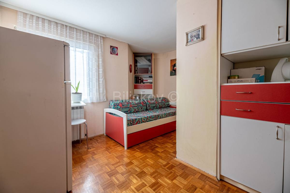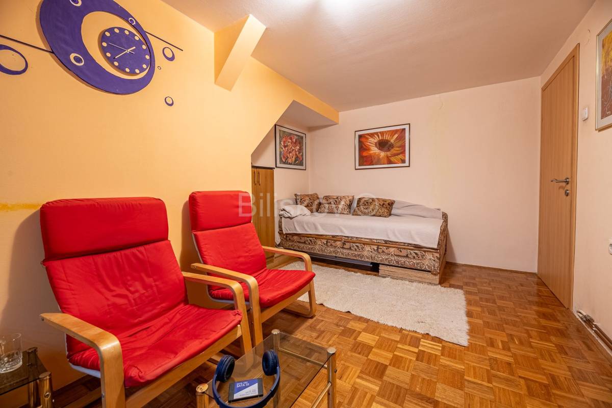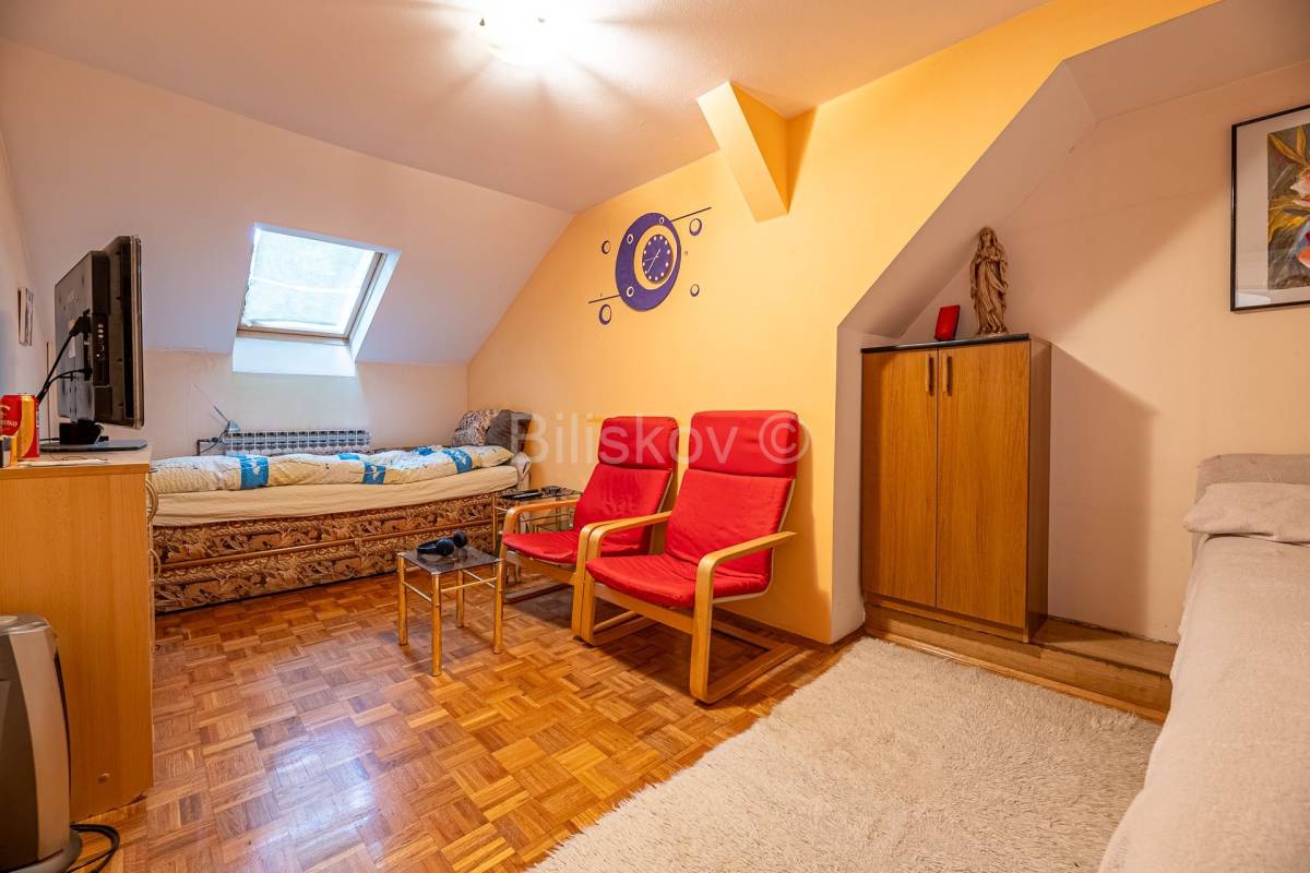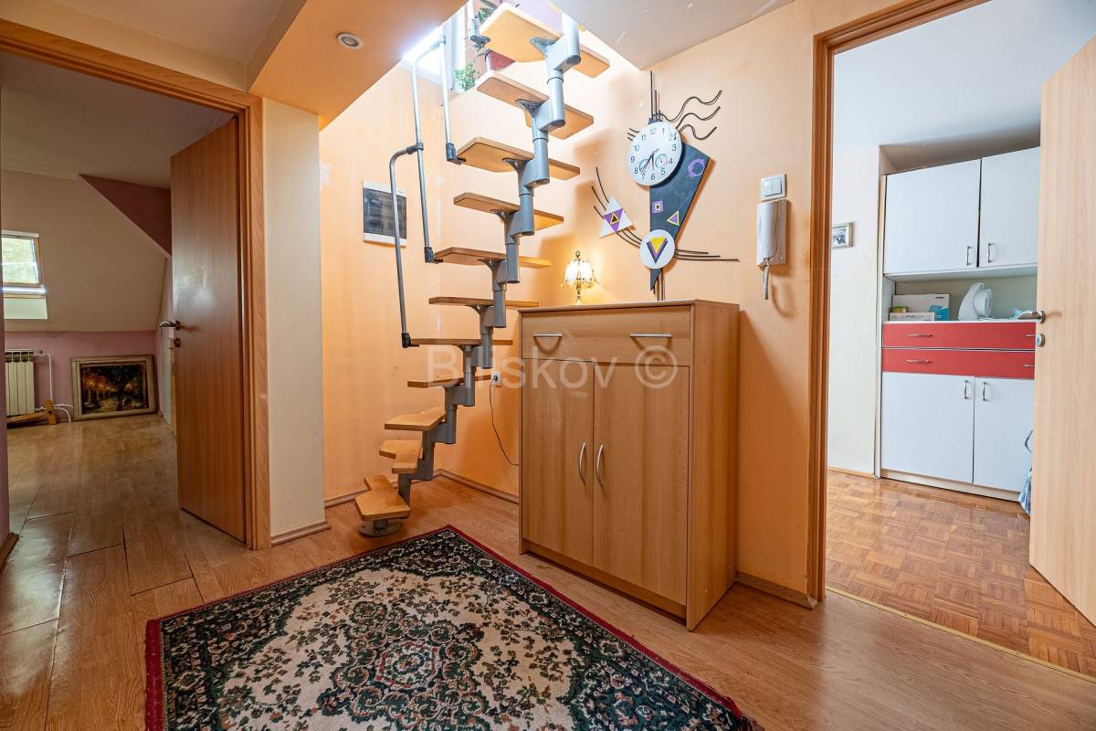 Peterosoban dvoetažan stan površine 136,75 m2 na 2. i 3. katu stambene zgrade izgrađene 1930. godine.