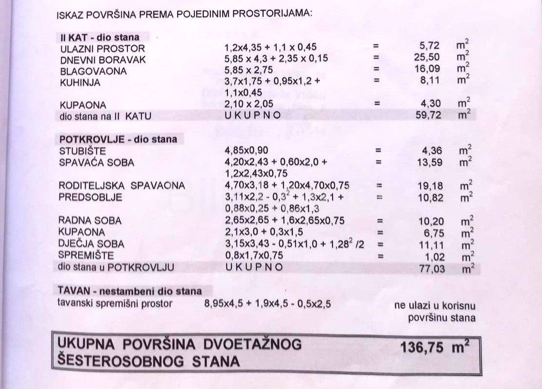Na drugoj etaži (77,03 m2) nalazi se hodnik, 4 spavaće sobe, kupaonica s wc-om i spremište. Visina stropa na drugoj etaži je 2,3 m.