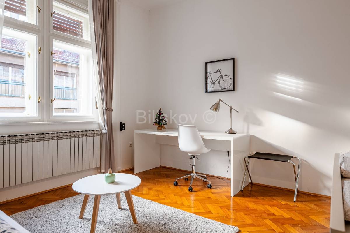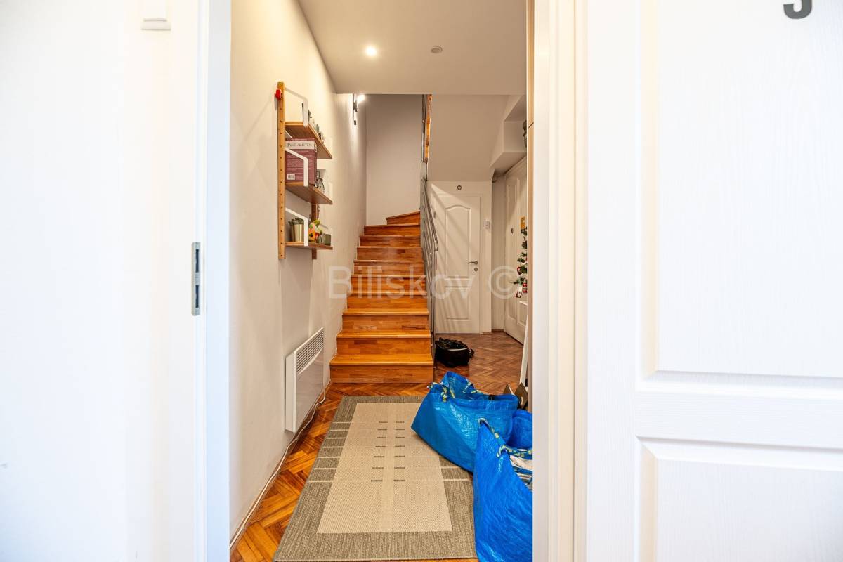 Prekrasan moderan, dvoetažni četverosoban soban stan stvarne površine 137,20m2 na 3. i 4. katu zgrade sagrađene 1927 godine. Po vl.listu stan je 112,15m2. Zgrada nema dizalo. Zgrada je konstrukcijski obnovljena.