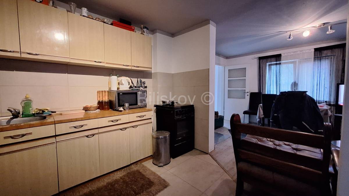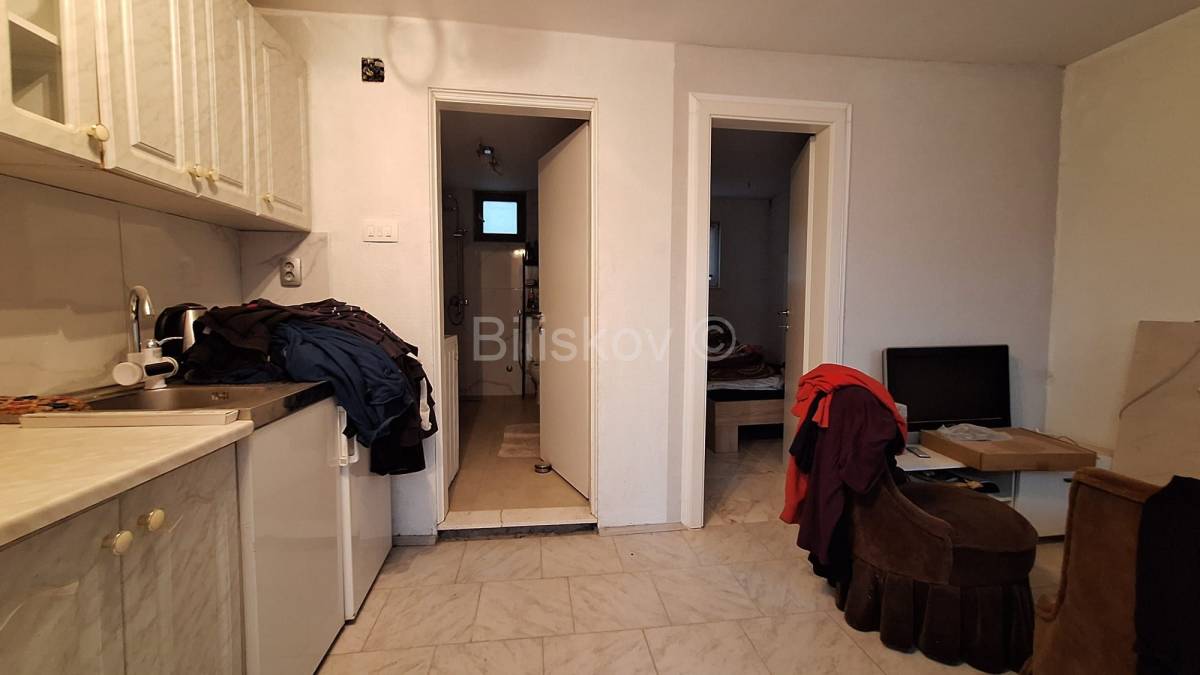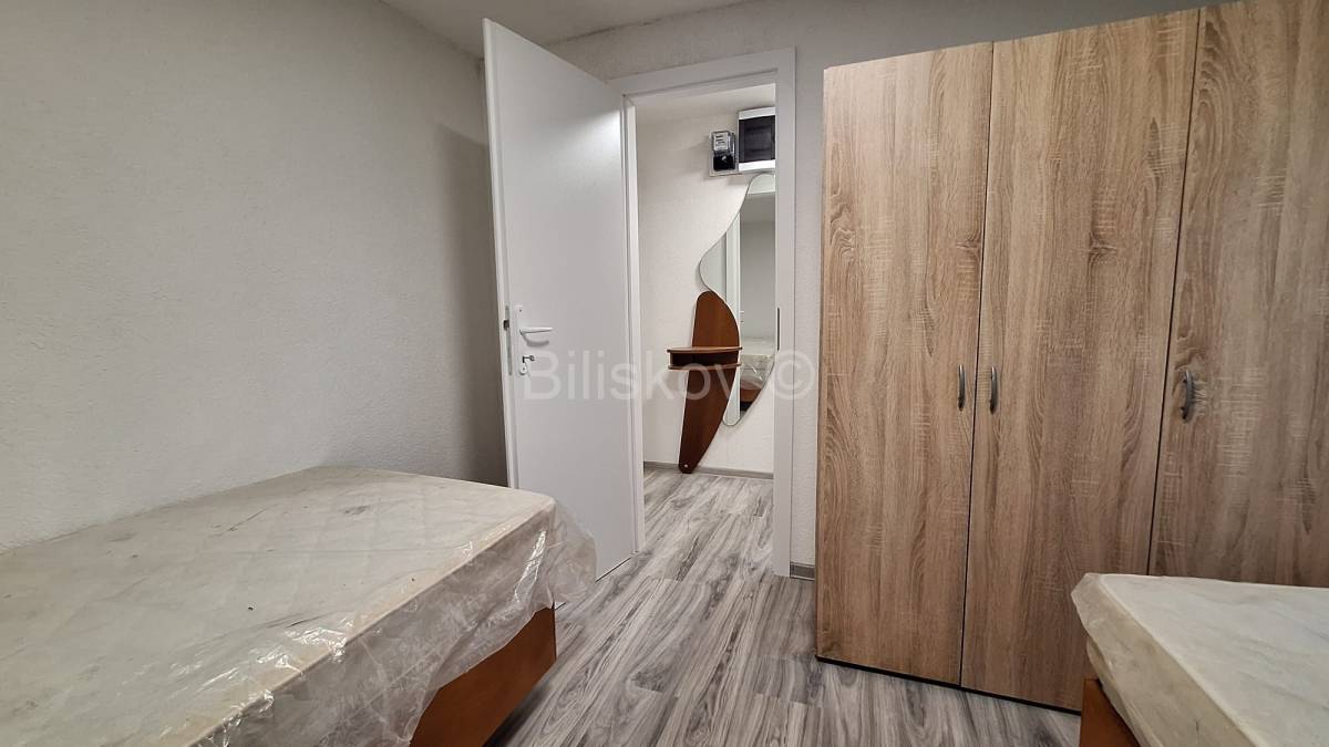 Gornji kat zauzima veći stan površine cca 75 m², koji se sastoji od hodnika, dvije spavaće sobe, kupaonice s WC-om te prostranog dnevnog boravka u otvorenom konceptu s kuhinjom, idealnog za obiteljski život i druženja. Donja etaža sadrži jednosobni stan i garsonijeru, svaki površine oko 35 m², što omogućuje zaseban životni prostor za članove obitelji ili najam kao dodatni izvor prihoda.