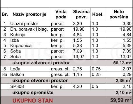 Stanu pripadaju i spremište površine 4,20 m2 (NKP 2,1 m2) i garaža površine 15,55 m2 (NKP 9,33 m2).