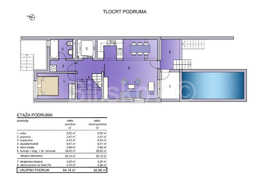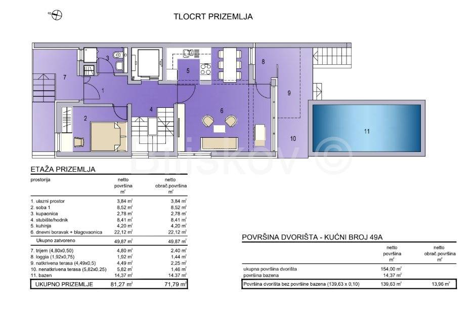Ukupna obračunska površina iznosi 220 m², a nekretnina je raspoređena na više etaža, pružajući funkcionalnost i visok stupanj komfora: