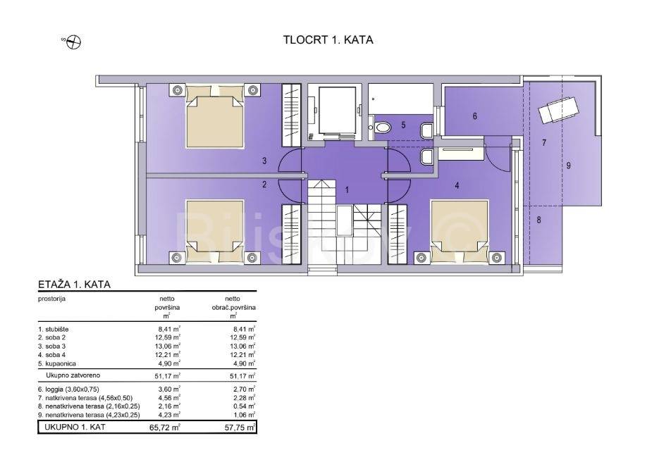 Krovna etaža: zatvoreni prostor + prostrana terasa 20,42 m²