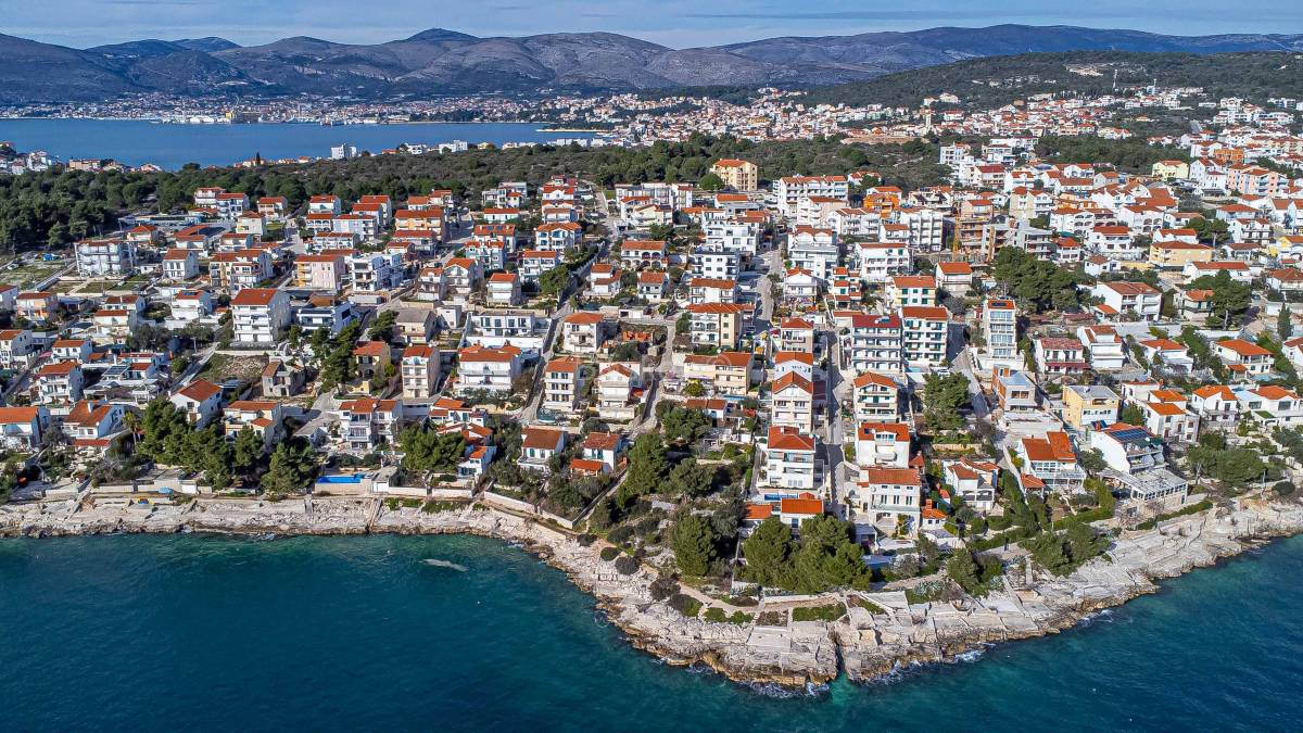 Na prodaju je kuća 116,85 m2 na zemljištu od 330 m2, na otoku Čiovu, u blizini centra Trogira, Zračne luke Split i ulaza ma autocestu A1, a samo 450 metara od plaže.