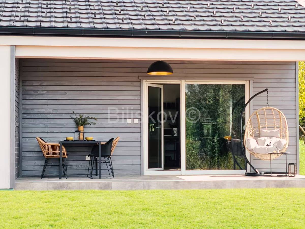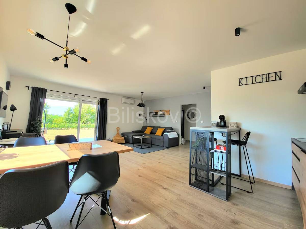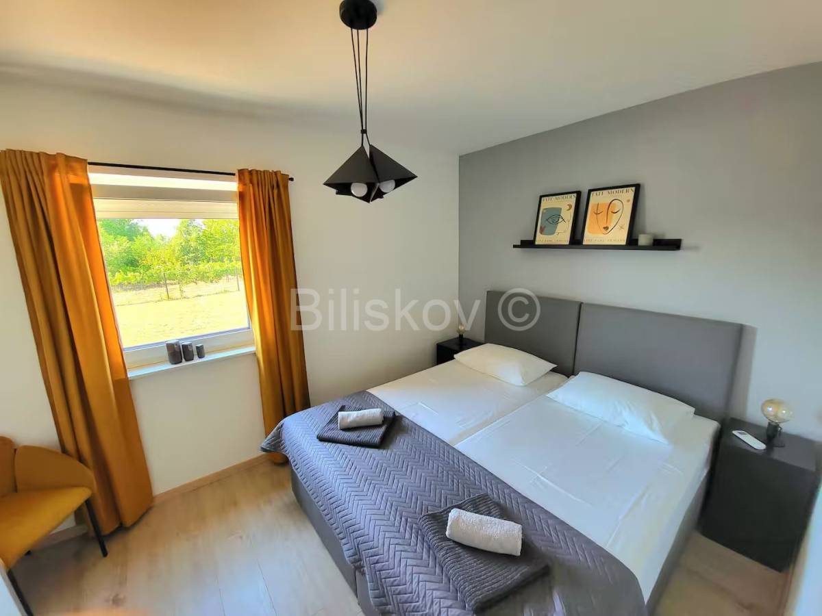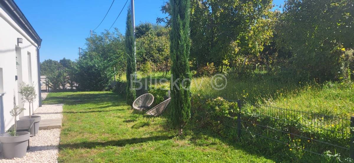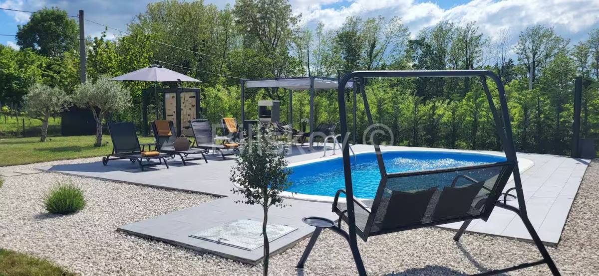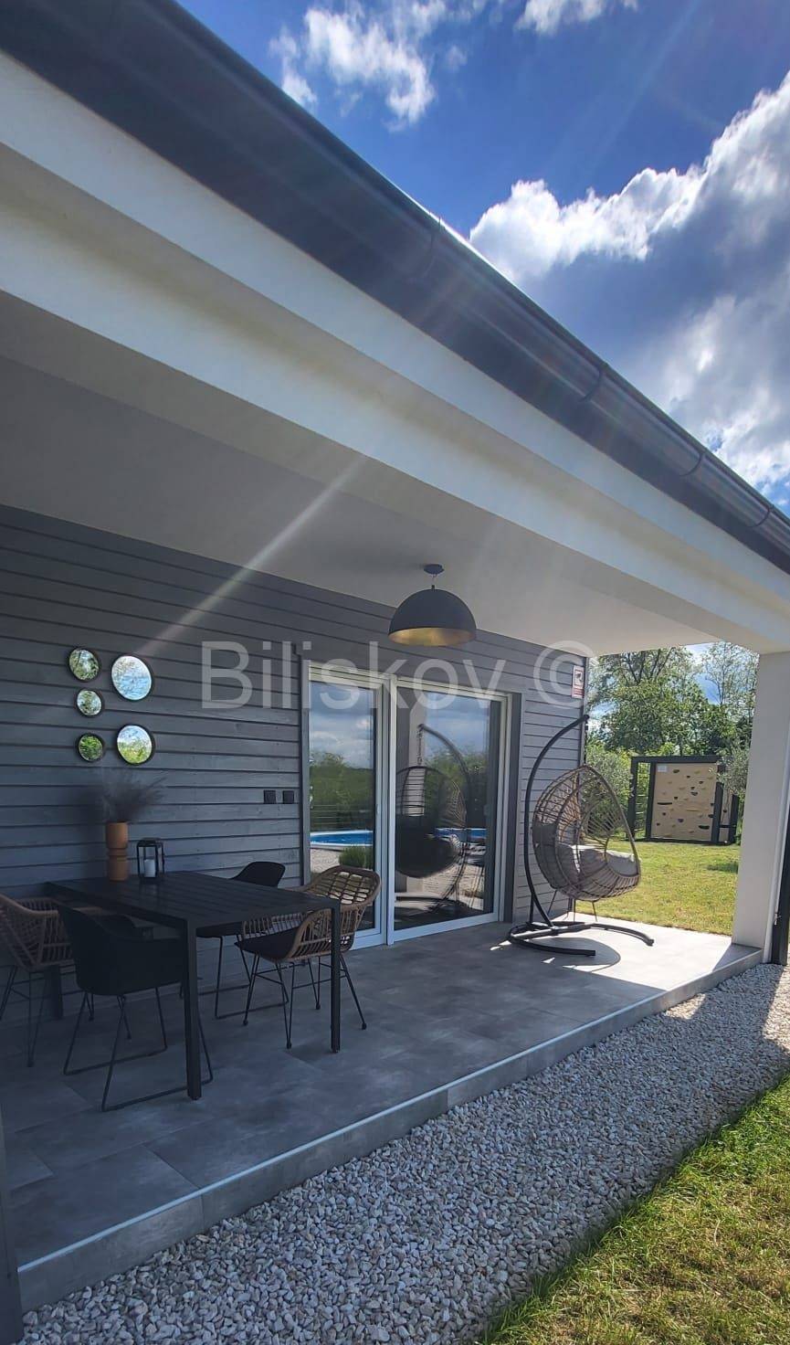 Vrlo lijepa i moderno uređena trosobna kuća površine 102 m², s bazenom od 32 m² izgrađena 2022. godine, smještena je na parceli od 1000 m².