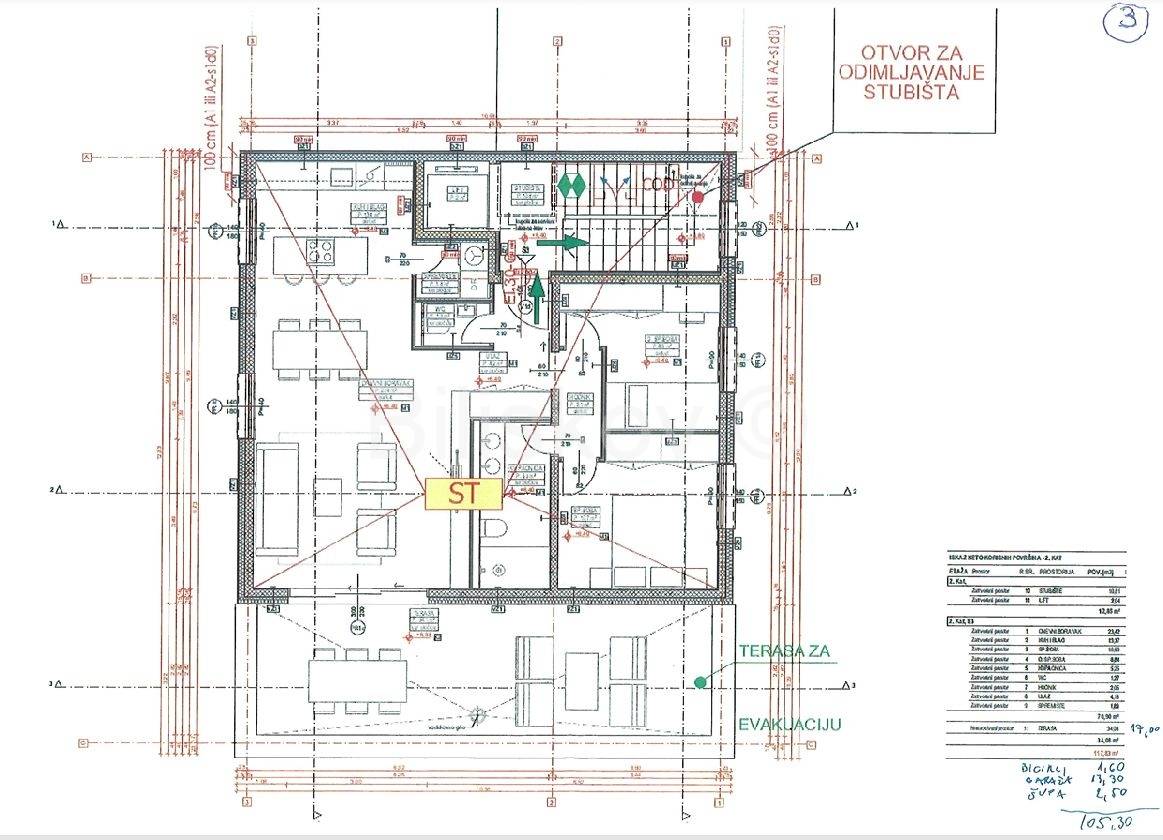 Prodaje se trosoban penthouse ukupne neto površine 105,30 m2 na 2. katu kvalitetne novogradnje s liftom čiji se završetak očekuje početkom 2027. godine.