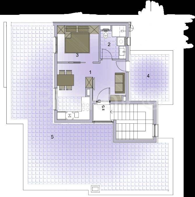 Na prodaju je prostran jednosoban penthouse u novogradnji u Trogir, smješten na 2.katu moderne stambene zgrade.