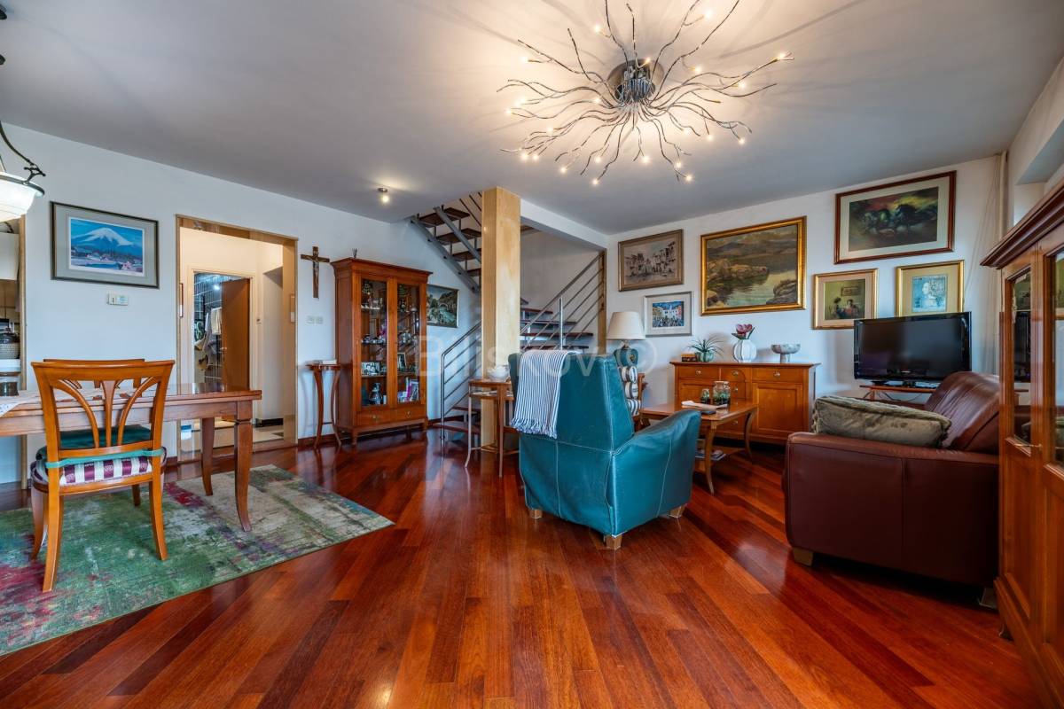 - 1.kat: veliki dnevni boravak integriran sa blagovaonicom, kuhinja,ostava, spavaća soba, radna soba, kupaonica, gostinjski wc, vešeraj i velika terasa ( 33m2) sa koje „puca“ prekrasan pogled na bujnu vegetaciju. Sa ove etaže vode stepenice, sa širokim gazištem na gornju etažu, koja se sastoji od: