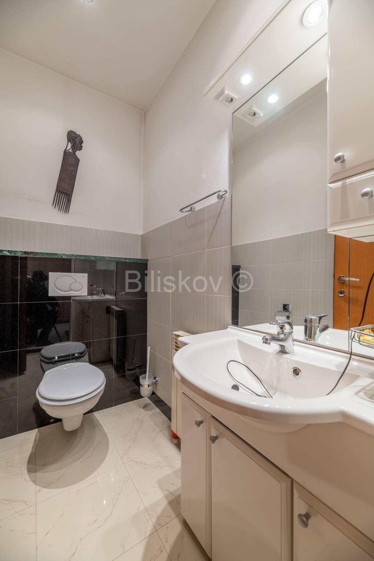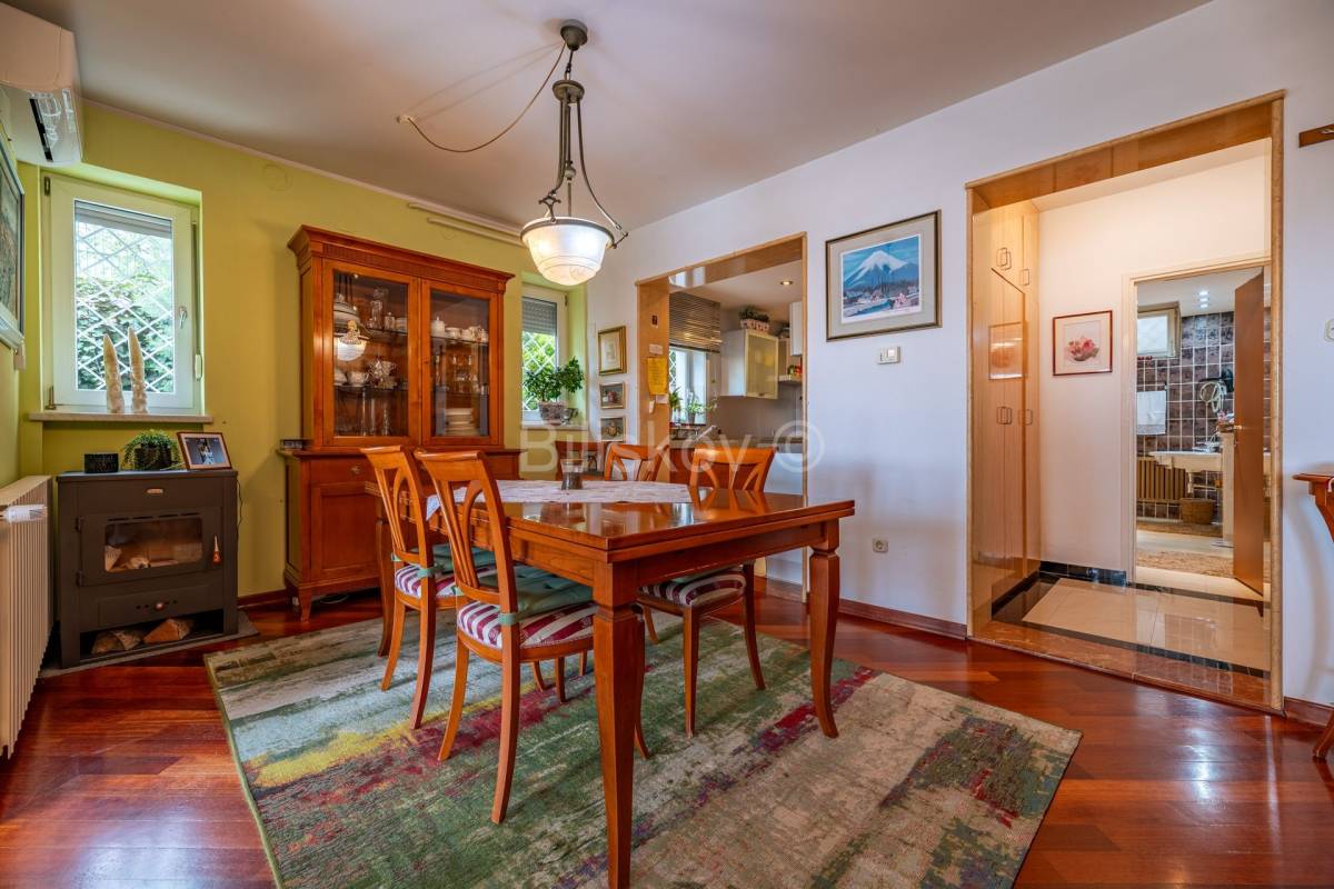 Lijep peterosoban stan sa garsonjerom, površine 207, 50 m2, u kući građenoj 1980 godine. Kuća nema dizalo.