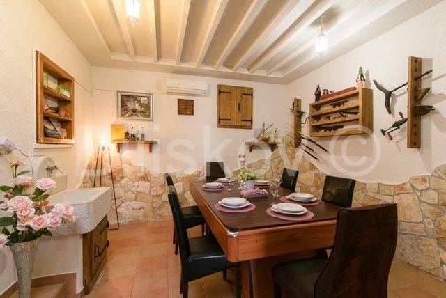 Unutrašnjost uključuje potpuno opremljenu kuhinju, klimatizirane prostorije (3 klima uređaja h/c) i omogućuje grijanje na struju ili peći na drva, uz potpunu toplinsku izolaciju koja osigurava udobnost tijekom cijele godine.