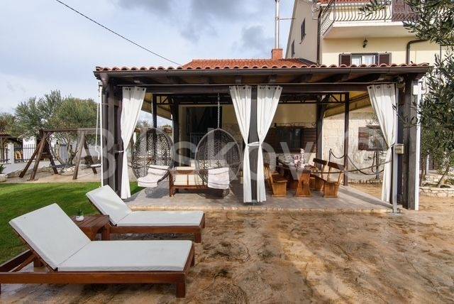 Prodaje se prostrana i luksuzno potpuno opremljena kuća u mirnom području Unešića, idealna za obitelj ili investiciju.