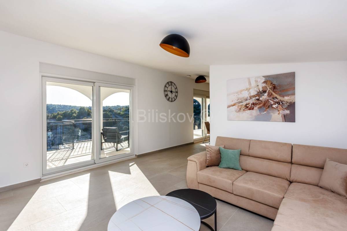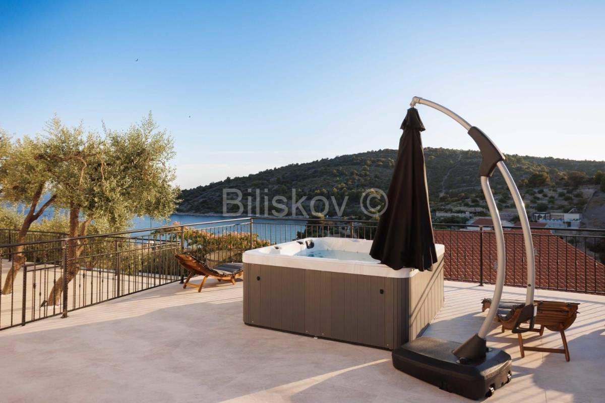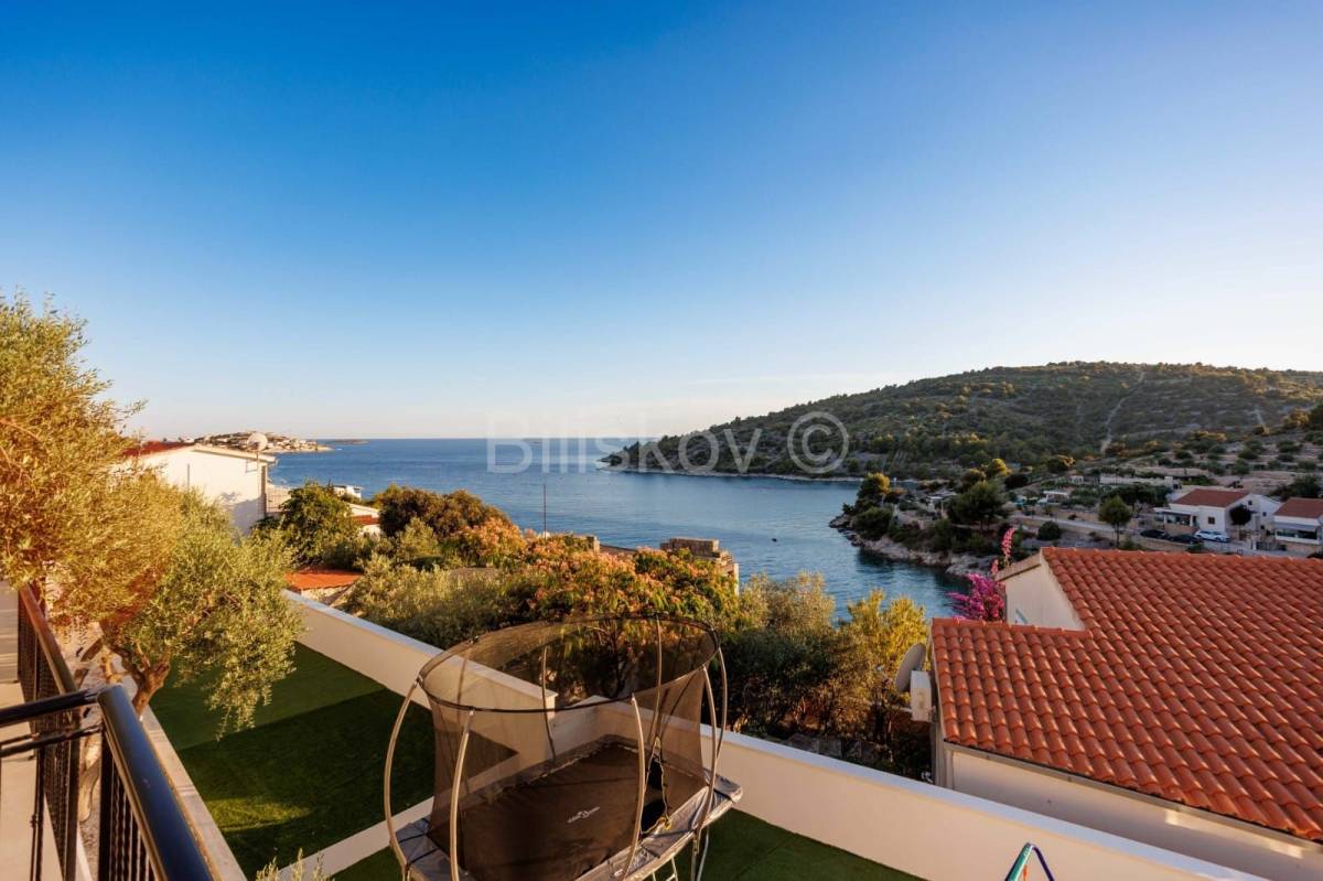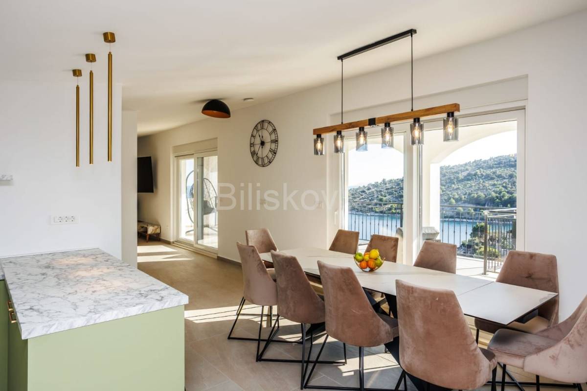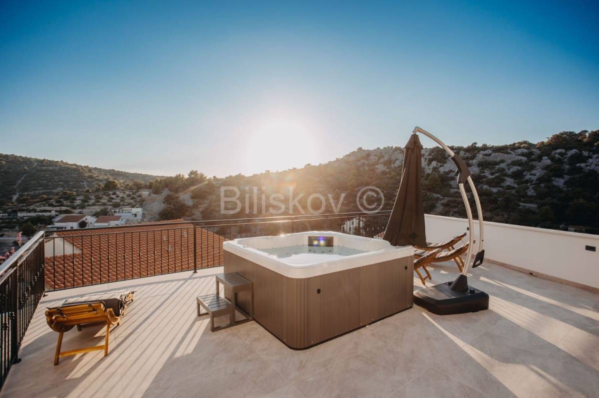 U prizemlju se nalazi dvosobni apartman i podrum, dok se na prvom katu nalaze tri sobe, vešeraj i igraonica. Drugi kat nudi prostor predviđen za saunu, dvije sobe i teretanu, a na trećem katu smješteni su dnevni boravak i kuhinja s izlazom na prostranu terasu. Sve prostorije u kući imaju izlaz na balkon s prekrasnim pogledom na more.