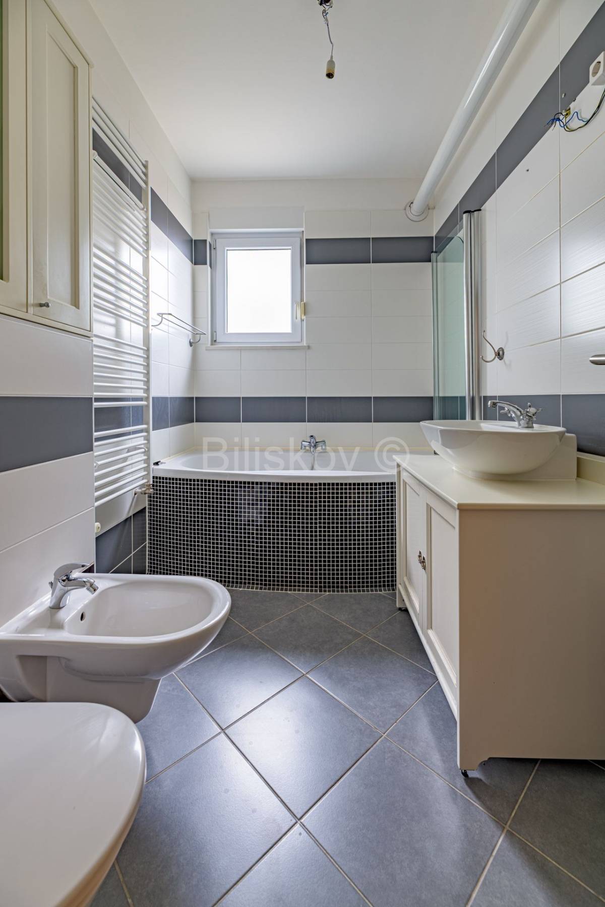 Odličan dvoetažni šesterosobni stan, zatvorene neto površine 148,5 m², smješten je u prizemlju i podrumu zgrade izgrađene 2008. godine. Uz stan pripadaju dvije lođe ukupne površine 7,30 m², dva parkirna mjesta ukupne površine 22,08 m² te vrt površine 139 m².