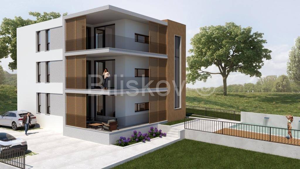 Na prodaju je prostrani stan u prizemlju moderne zgrade s tri etaže, površine 122 m². Stan se sastoji od tri spavaće sobe, dvije kupaonice i otvorenog dnevnog boravka s puno svjetla. Veliki prozori osiguravaju ugodnu svjetlinu u svakoj sobi.