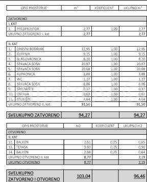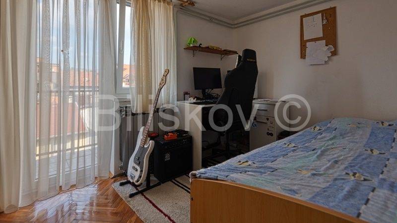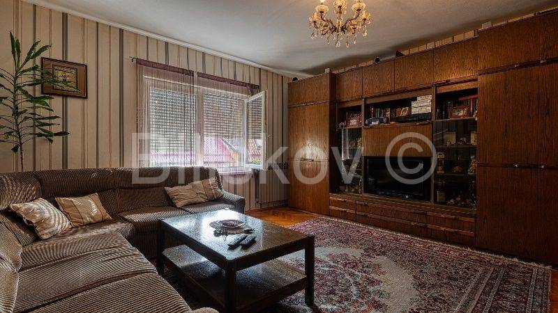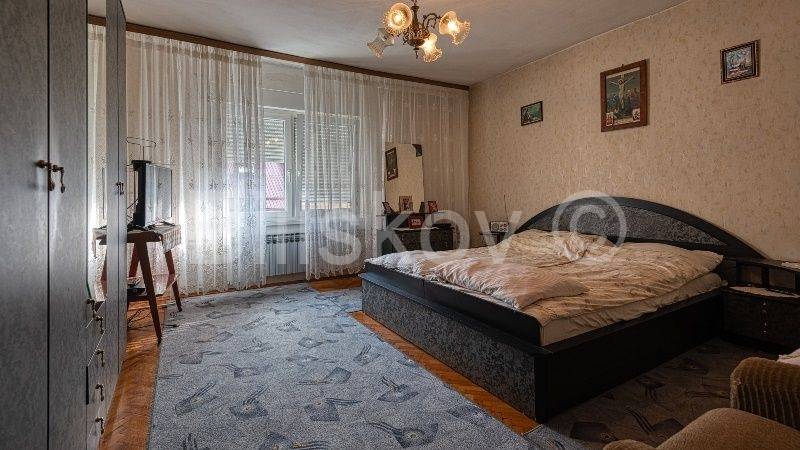 Dobar četverosoban stan zatvorene i otvorene površine 103,04m2 m2 na 2.katu stambene zgrade izgrađene 1963 godine. Po vlasničkom listu stan je površine 87,76 m2. Zgrada nema dizalo. U stan ulazi iz ulaznog prostora koji je na donjoj etaži. Stepenicama se penje u dnevni boravak, tri spavaće sobe, kuhinju koja se nastavlja na blagovaonicu, kupaonicu, WC, ostavu, spremište i veliki balkon. Stanu pripada i trošna garaža u dvorištu. U dvorištu postoji mogućnost parkiranja,